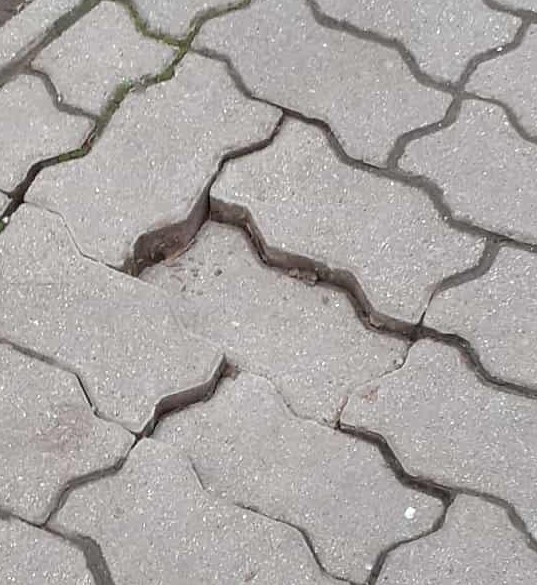 A II. kerület Torockó tér 1 szám alatt, a járda térköve besüllyedt, ami nagyon baleset veszélyes.