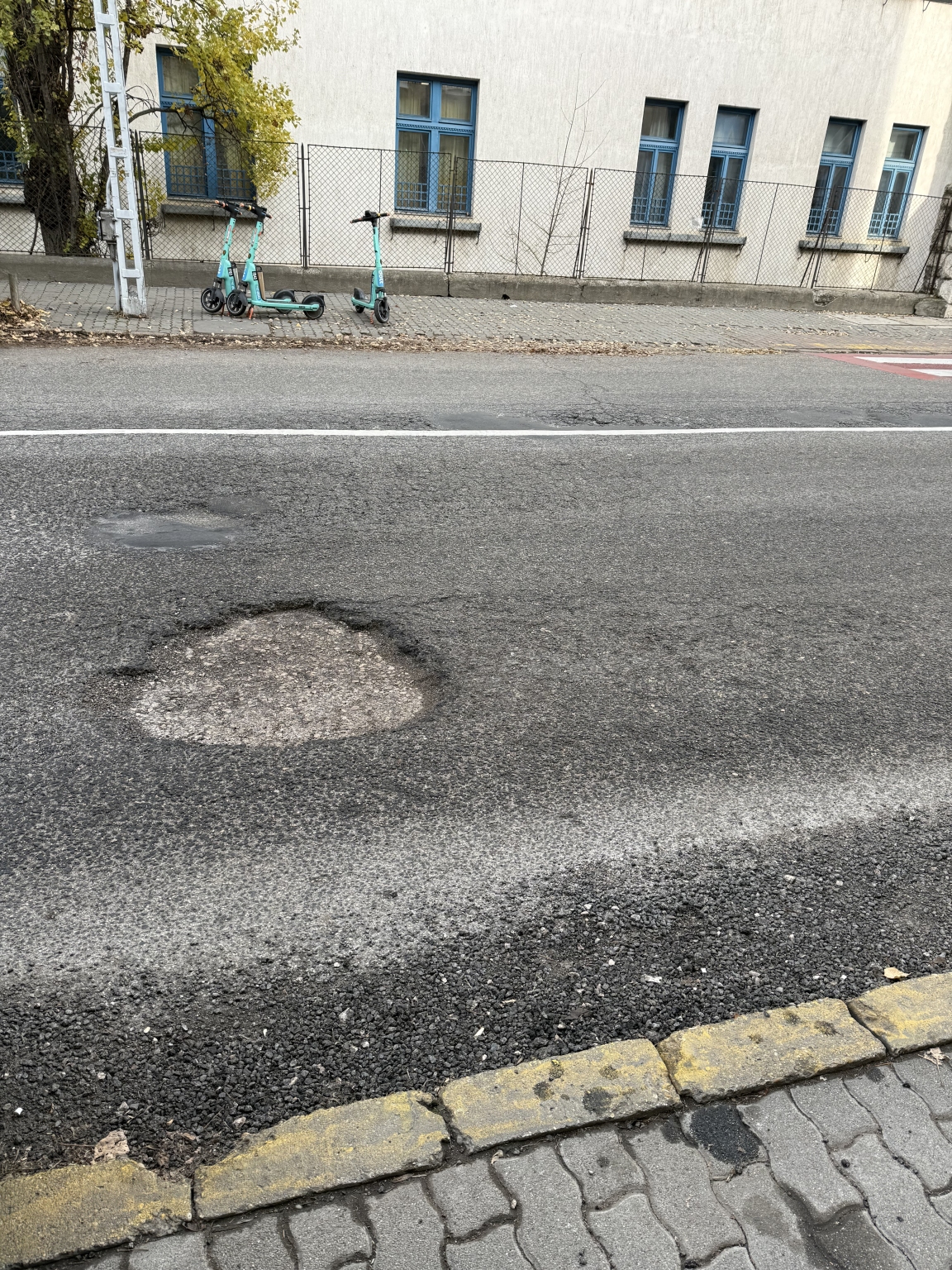 A 12. Ker Városmajor utca 64 előtt kialakult egy nagy kátyú. Az előző foltozás teljesen kijött.