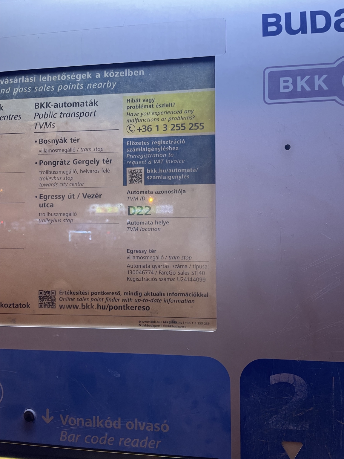 Üzemen kívül az Egressy téren lévő BKK automata.