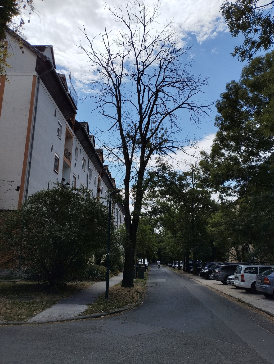 A főkert lepattintott, pedig közterületen áll. A házak által elfoglalt terület a műszaki járdákkal véget ér. Egy közepes őszi vihar is kidönti és rádől 2-3 autóra, elég nagy darab,,,