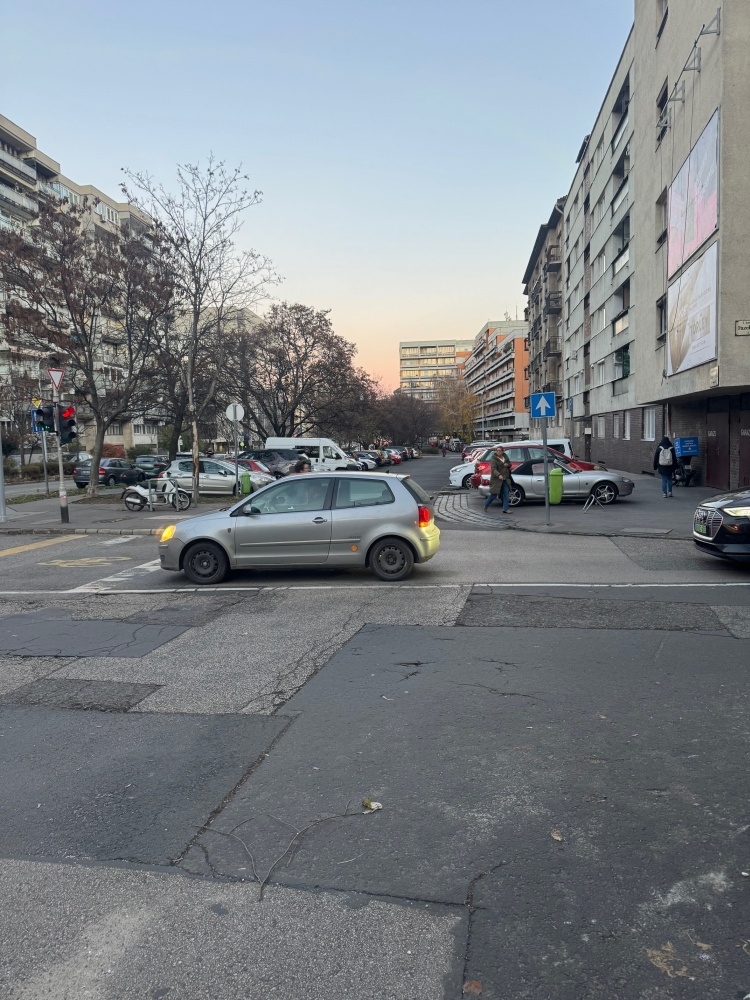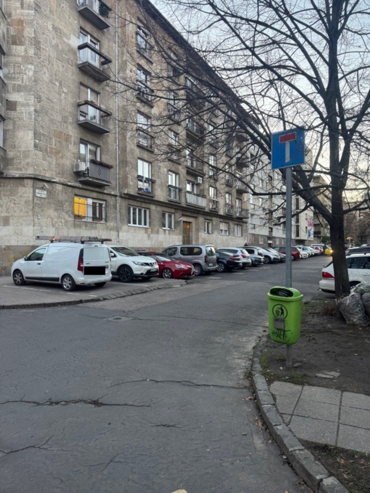 A jelölt helyen a parkoló utcája egyben egyirányú és zsákutaca is. Egyirányú utcába behajtó és közlekedő nem várja, hogy vele szemben közlekedjenek. Ez zavaró lehet.