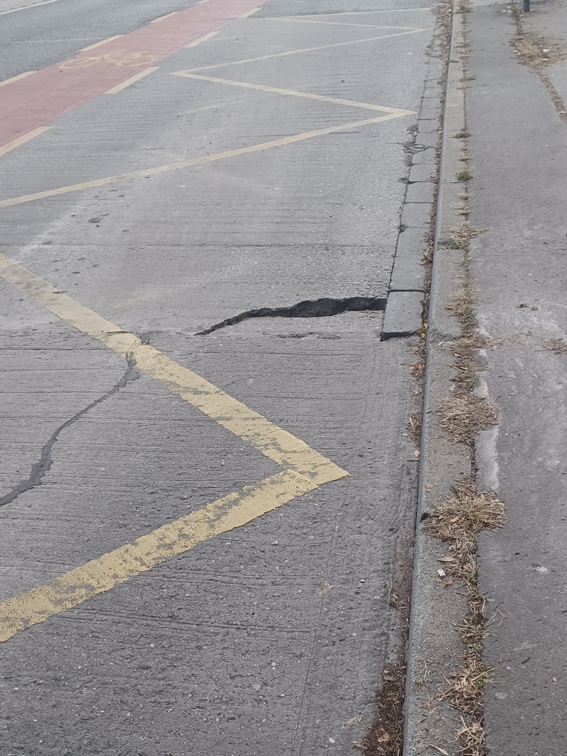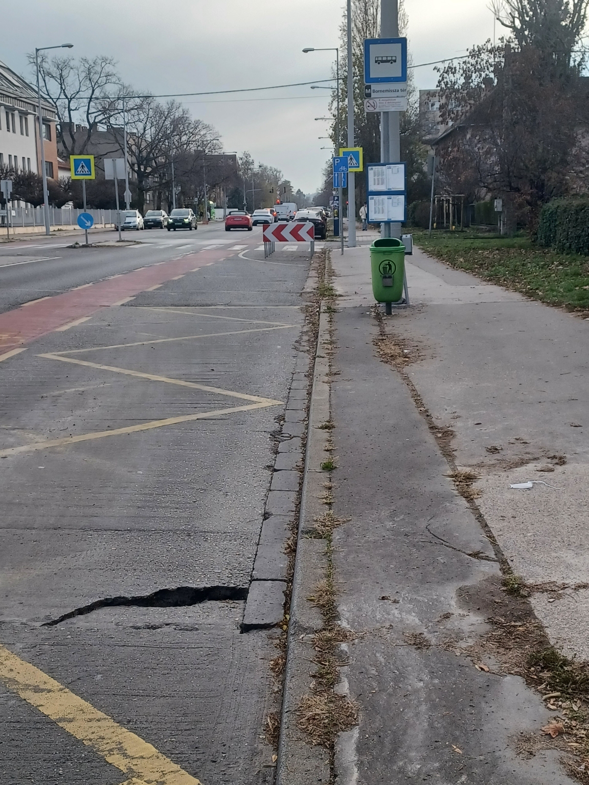 Bornemissza térnél a buszmegálló . Beszakadt aszfalt
