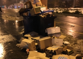 „Újabb katasztrófa kukákkal, szeméttel a Semiramis lakópark előtt.