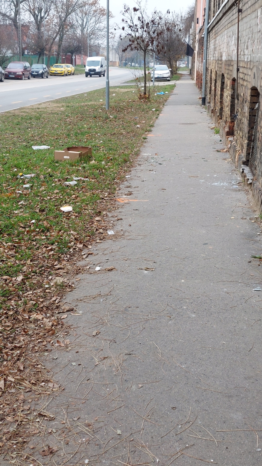 Sok az eldobott szemét a Kőér utca járdáján a páros oldalon, a Gergely és Cserkesz utca közötti szakaszon. Takarítás szükséges.