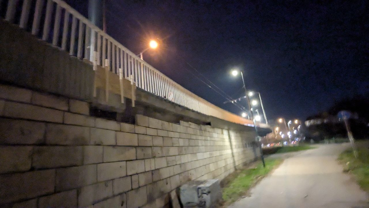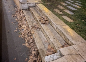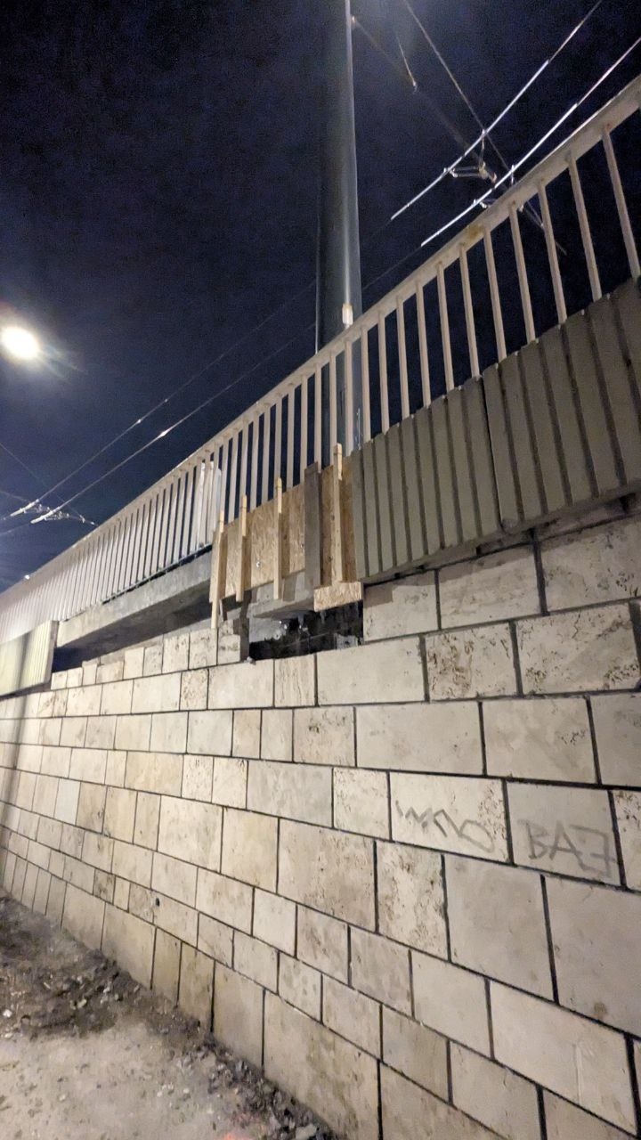 Az új oszlopok telepítésekor megrongálták a híd burkolatát, de nem javították meg.