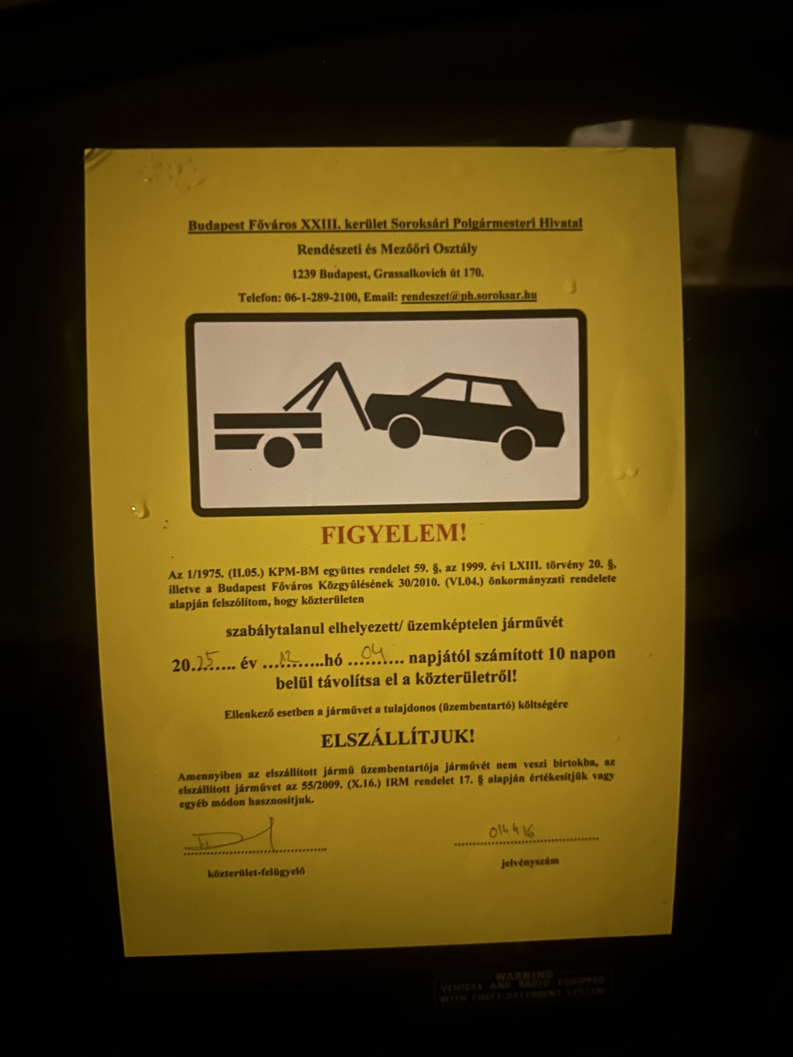 „kollégáink ellenőrizték a bejelentésben foglaltakat és megállapították, hogy a bejelentés valós, az érintett gépjárműre felhívást helyeztek el, amennyiben a jogszerűtlen állapot 10 napot követően is fennáll, úgy a járművet soron elszállítjuk. ”