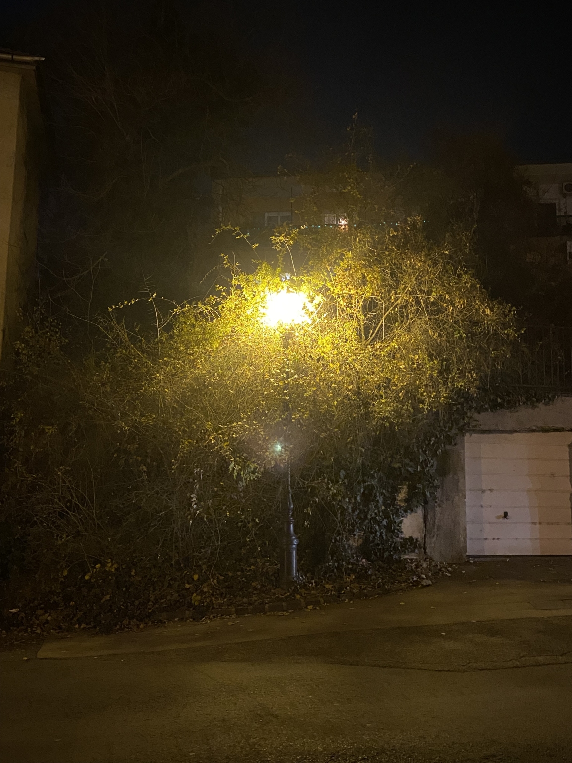 A Naphegy utcának a Fém utca és a Czakó utca közötti szakaszán a házak oldalán lévő világítások közül 3 darab sem világít egymás mellett!