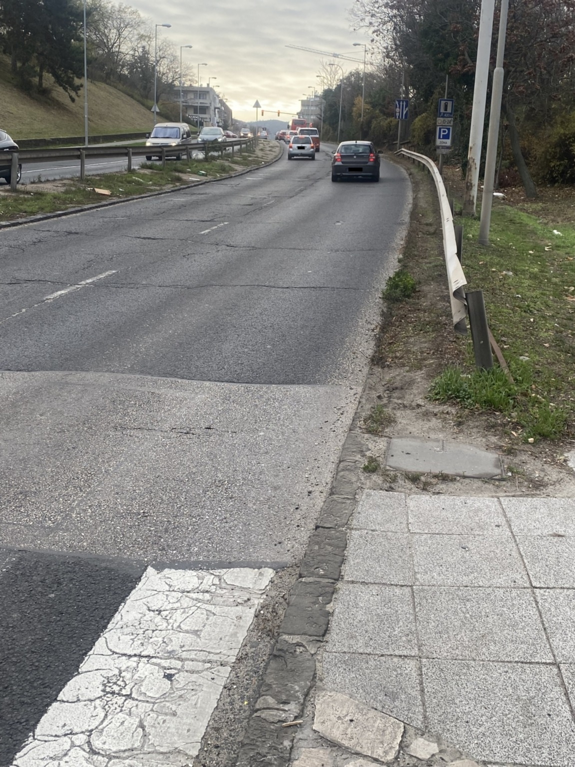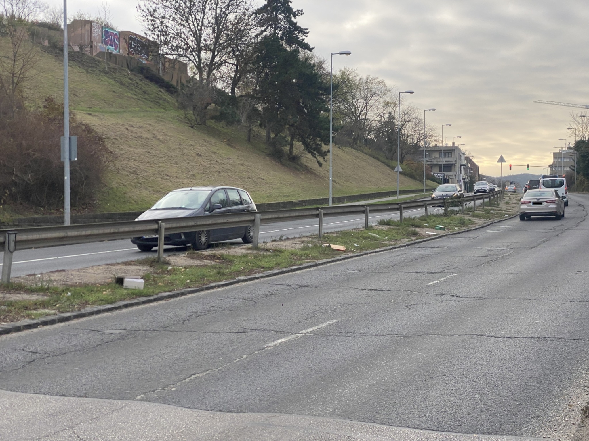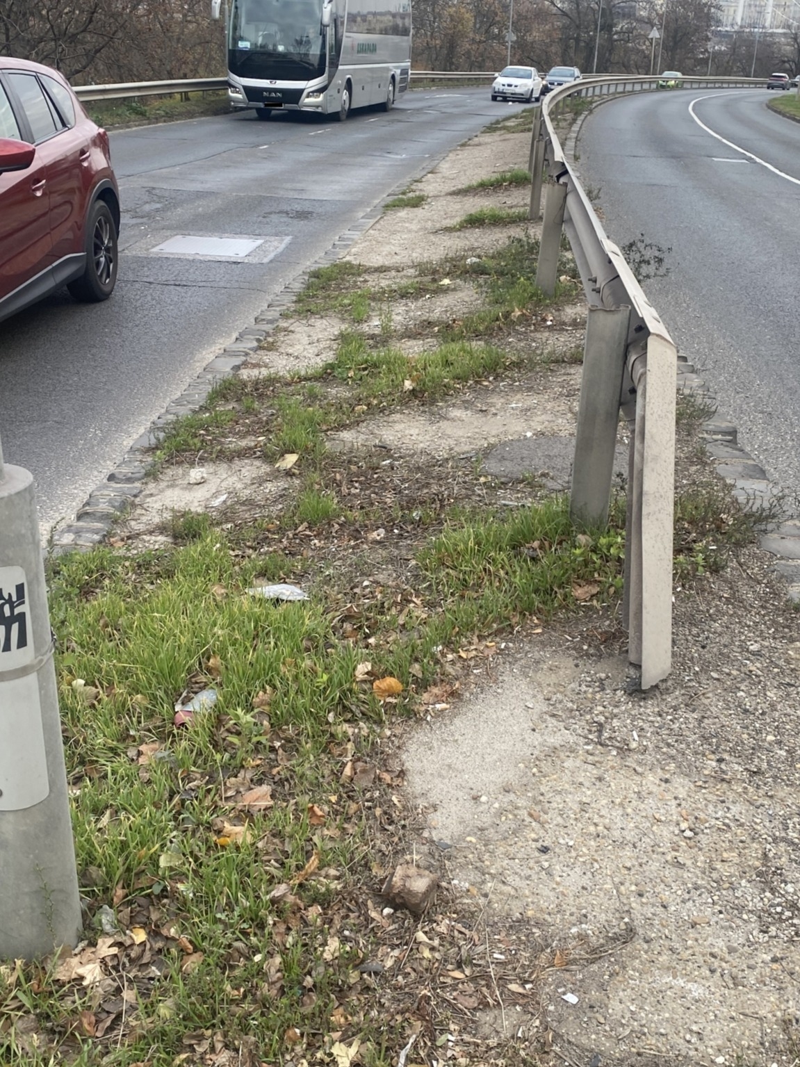 Kár mit magyarázni ezen. Az út állapota felfelé már borzalmas, de a patkák, szegélyek, sávelválasztó kordonok alatti részek is hányadékok. Látszik, hogy takarítóautó csak térképről ismeri a helyet, a középső részhez meg ember nem ért már rohadt régen.