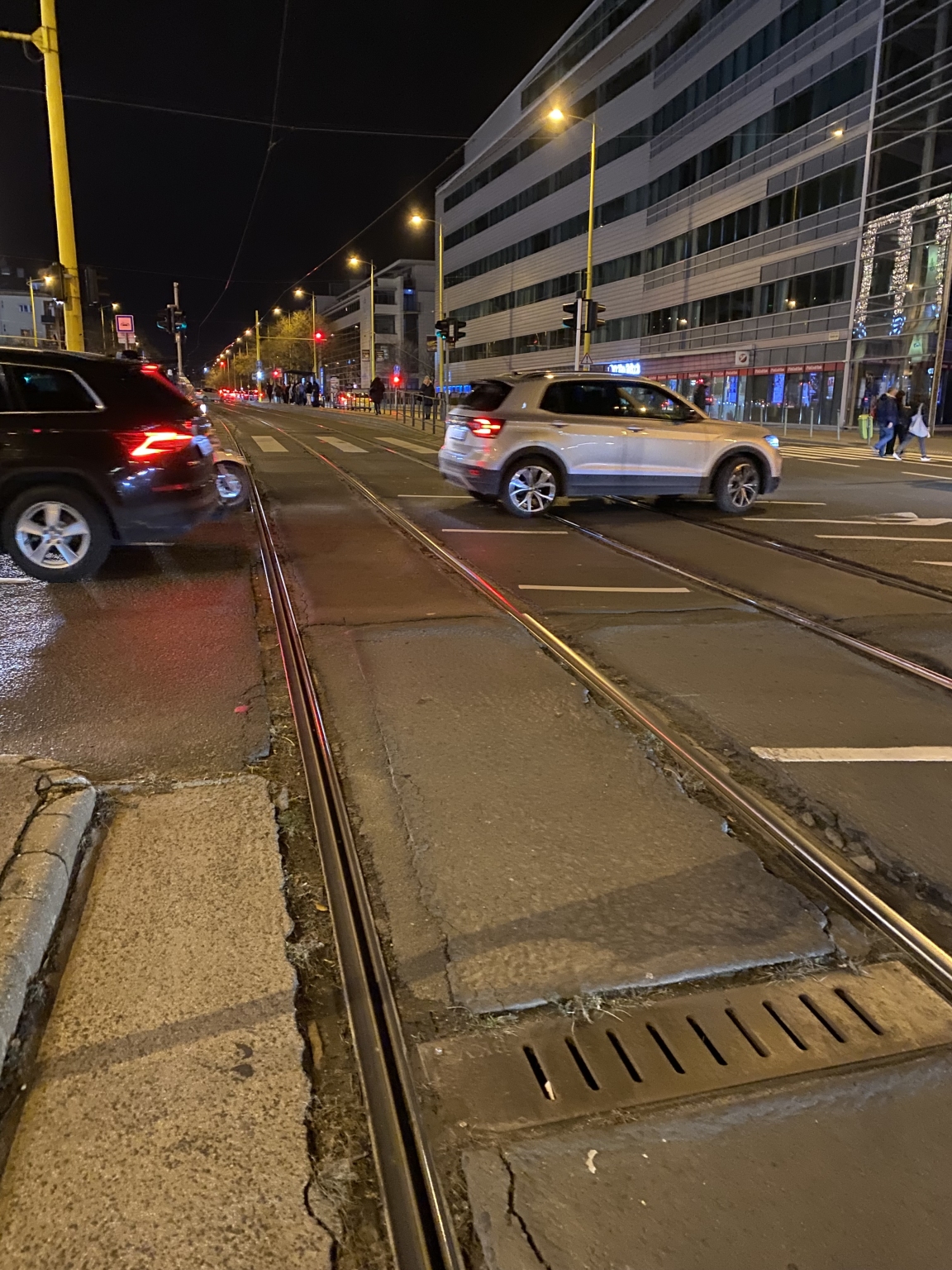 Az Alkotás-Csörsz sarkon a villamossínnel megáldott kereszteződés már nagyon rég borzasztó állapotban van. Mostanra teljesen kitörtek az aszfaltdarabok felpúposodott a beton. Alapvetően azt mondom, hogy akkor jó egy út, ha motorral is lehet rajta járni balesetmentesen. De ezen már autóval is nehézkes...