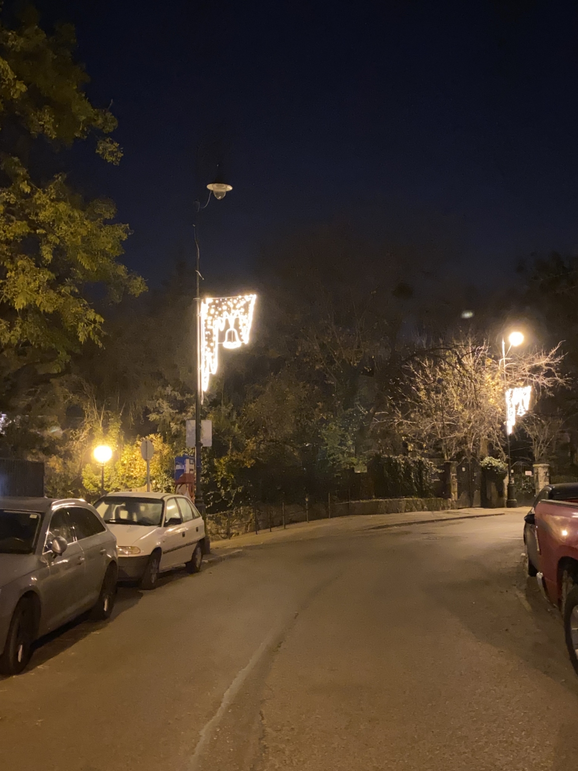 Naphegy téren az egyik magas lámpa nem világít csak a ráaggatott karácsonyi díszítés