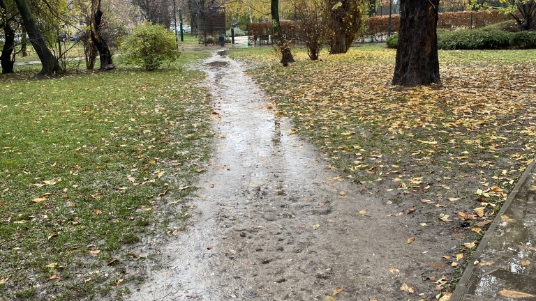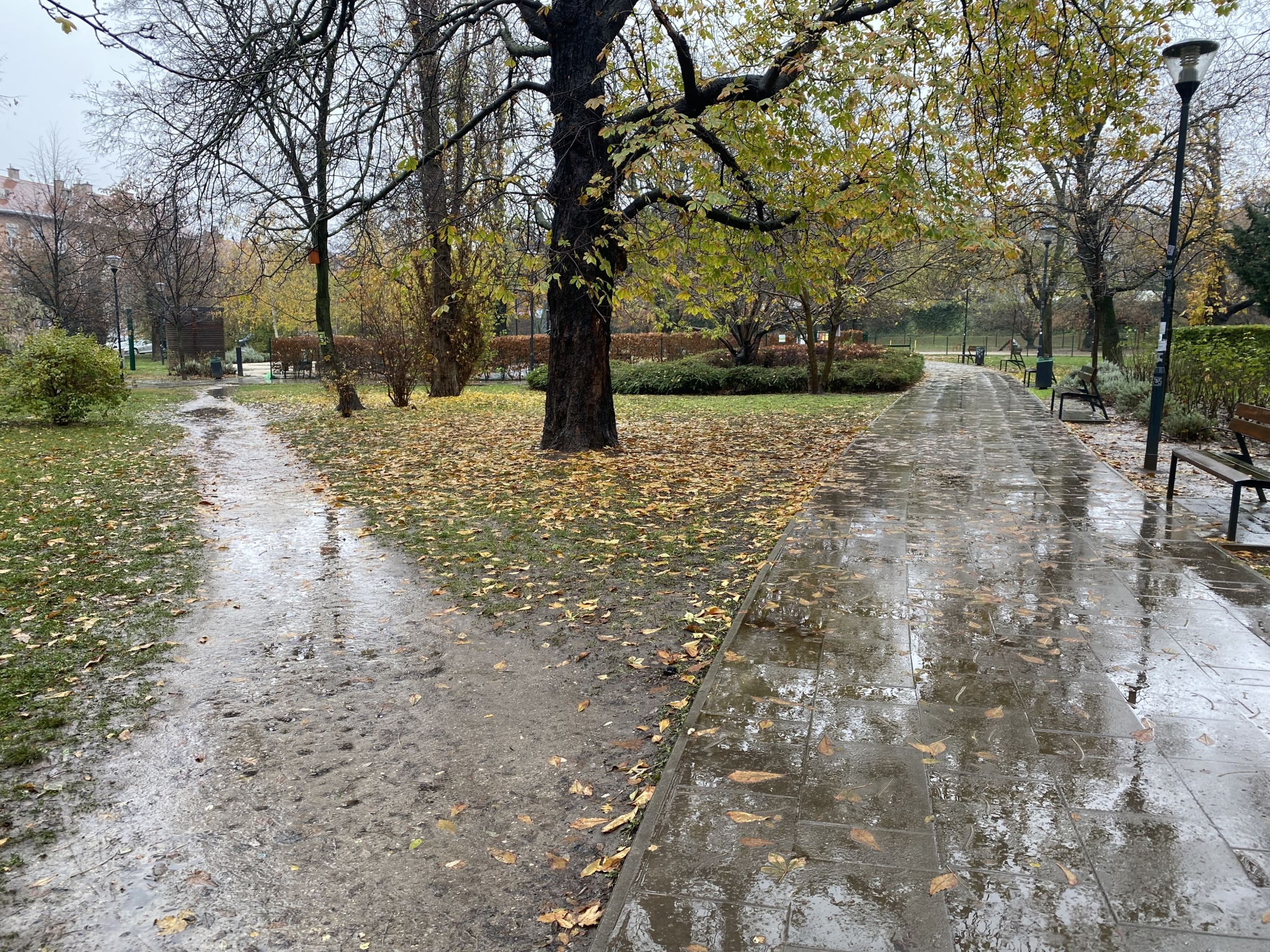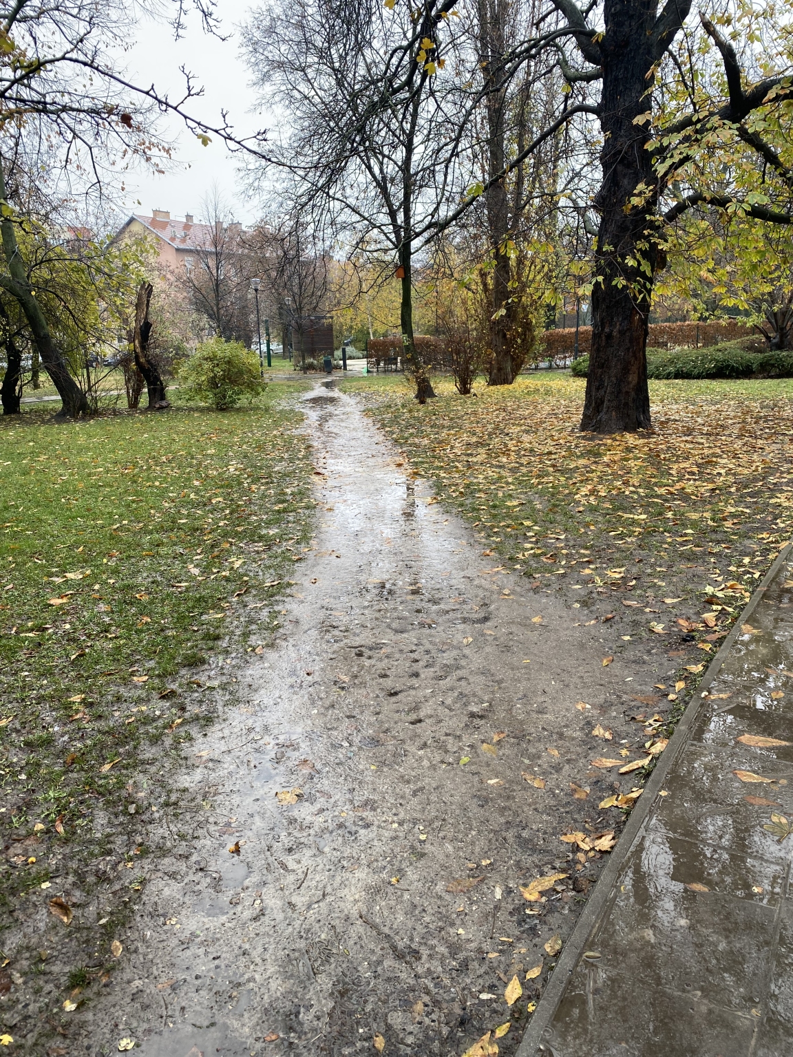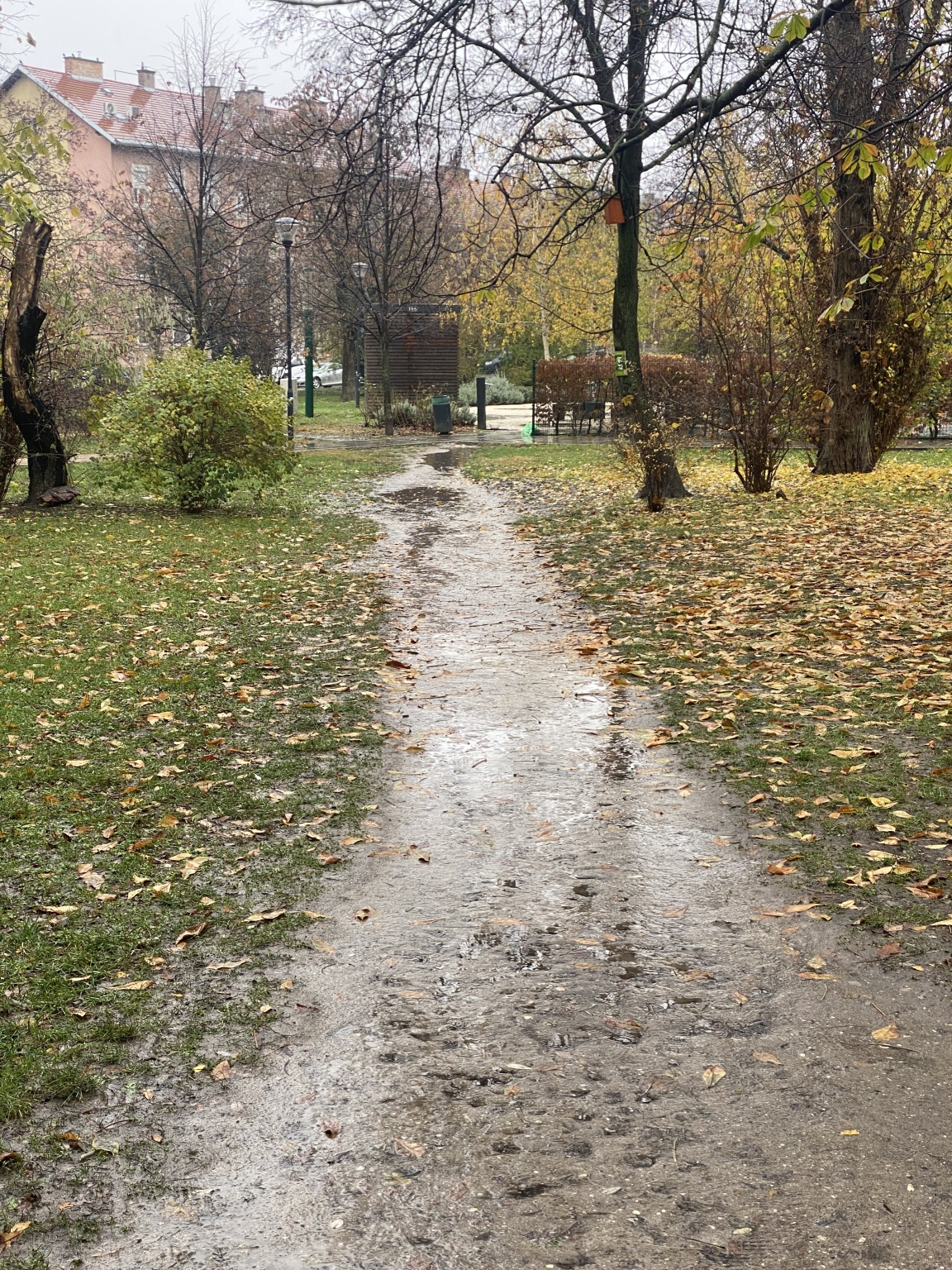 A Csörsz park térképen megjelölt részén régebben volt egy út. A park felújításakor ezt az utacskát beszántották és egy olyan struktúrát találtak ki amiben: Ha a hegyalja felől jön a gyalogos akkor a játszótérnél kétfele mehet, de csak a bal oldali út viszi őt ki a Csörsz utcához. Akik jobbra mentek a régi út irányába azok taposták ki ezt a borzasztóan ronda és széles ösvényt pár év alatt. Szóval a tervező felkínált a gyalogosoknak egy választási lehetőséget, majd hoppon hagyta őket az egyik lehetőség esetén...