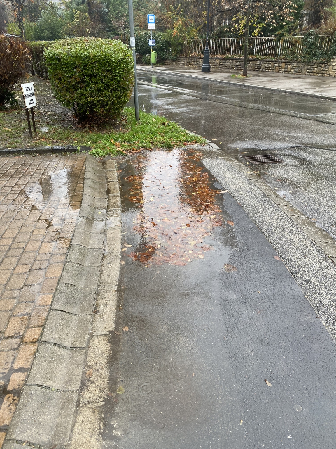 A Naphegy tér orvos utca felé eső átjárójában van egy olyan elfolyástalan tócsa, ami a járda egész szélességét lefedi. Át kell ugrani a kisgyerekeseknek (van itt egy, a város szintjén is nagyon népszerű és jól karbantartott játszótér), azonban, amikor ugranak, kiugranak egy olyan úttestre, ahol buszok járnak, well done...