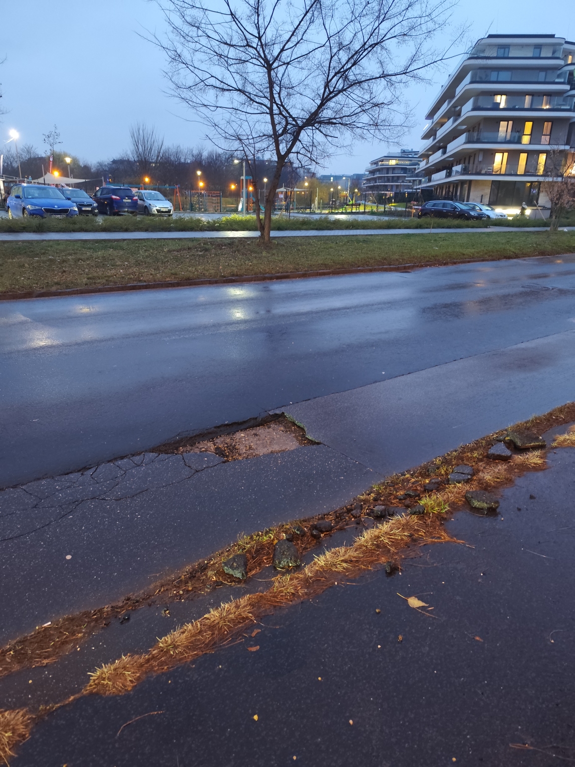 Napról napra nagyobb és mélyebb kátyú. Pont a nyomvonalban van. Éles a széle. Minél hamarabbi megszüntetést kérünk.