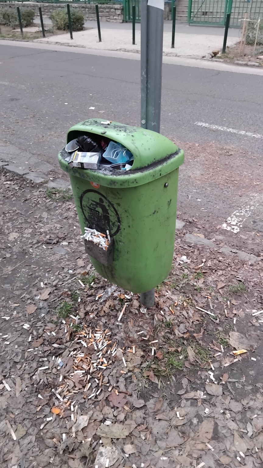A Laky Adolf utcai Klinika előtt óriási terhelésnek van kitéve a szemétgyűjtő - a dolgozók dohányzása, kis szünetek, pihenők alkalmával ide kerül a szemét, ami jó dolog! Viszont úgy tűnik, elégtelen a kapacitás - akárhányszor járok erre, még sosem láttam tömöttnél üresebb állapotban, és a környékre is kiszóródik a maradék.