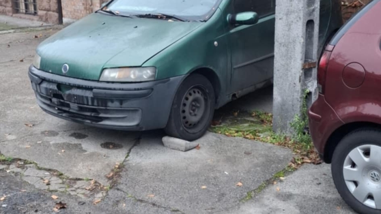 Az autó hetek óta parkol a kőbányai Hollóháza utca és Cserkesz utca kereszteződésében, a villanyoszlop mögött rendszám nélkül. Az amúgy is parkolási szempontból zsúfolt utcában nehéz parkolóhelyet találni, ez az autó nem könnyíti meg a helyzetet.