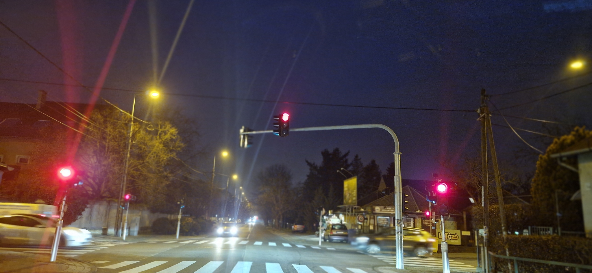 Budapest 16. kerület Rákosi út - Mátyás király út kereszteződésben a Rákosi úton a belváros felé vezető irányban az úttest feletti jelzőlámpa sárga izzója nem világít.