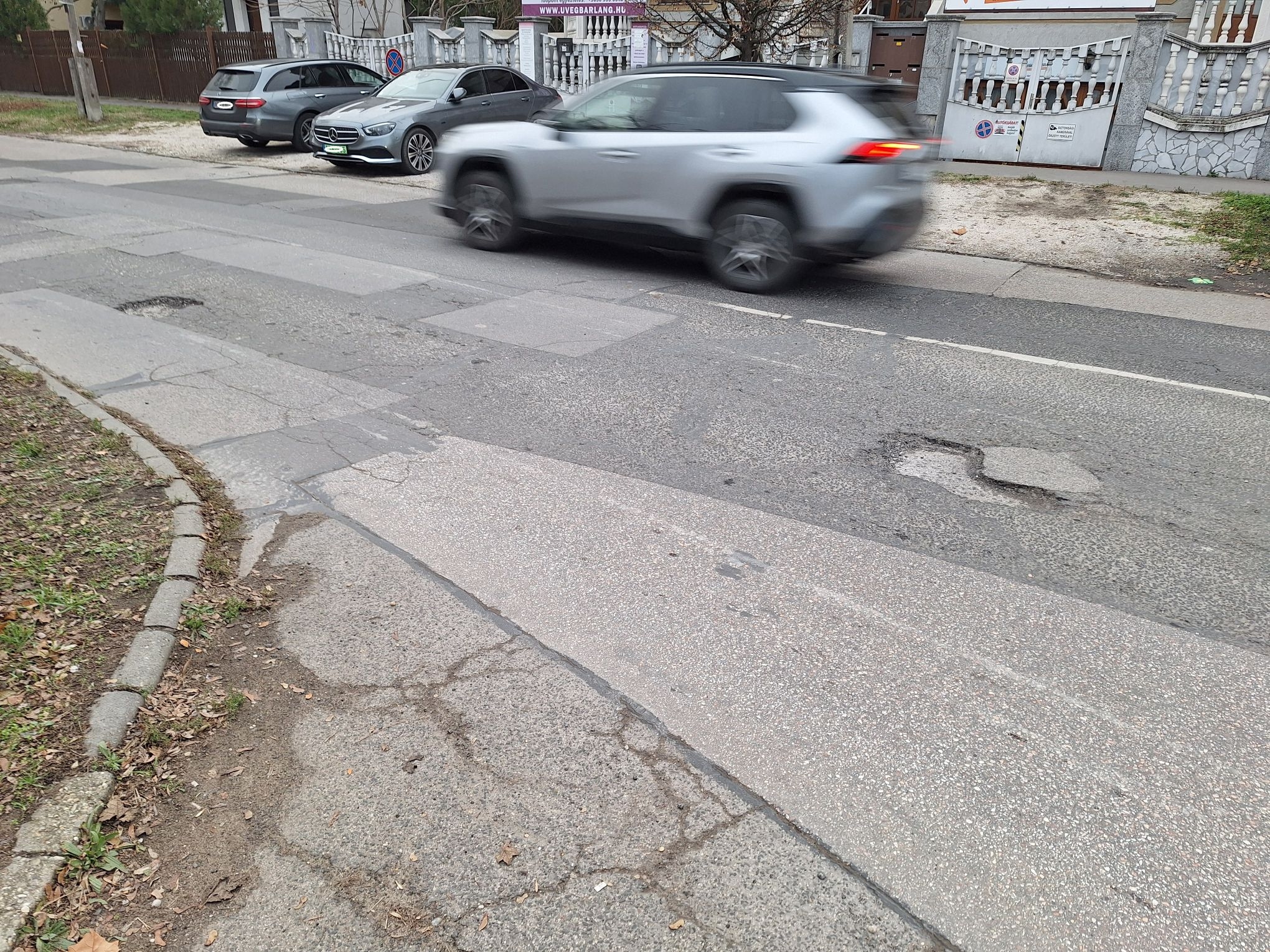 A Mogyoródi úton, a Vezér úti lámpa előtt három kátyú is kialakult egymás mellett. Különösen nehéz figyelni rá, hogy az út vonalát követve, mindegyiket sikerüljön kikerülni. Kérjük mielőbbi javítását!