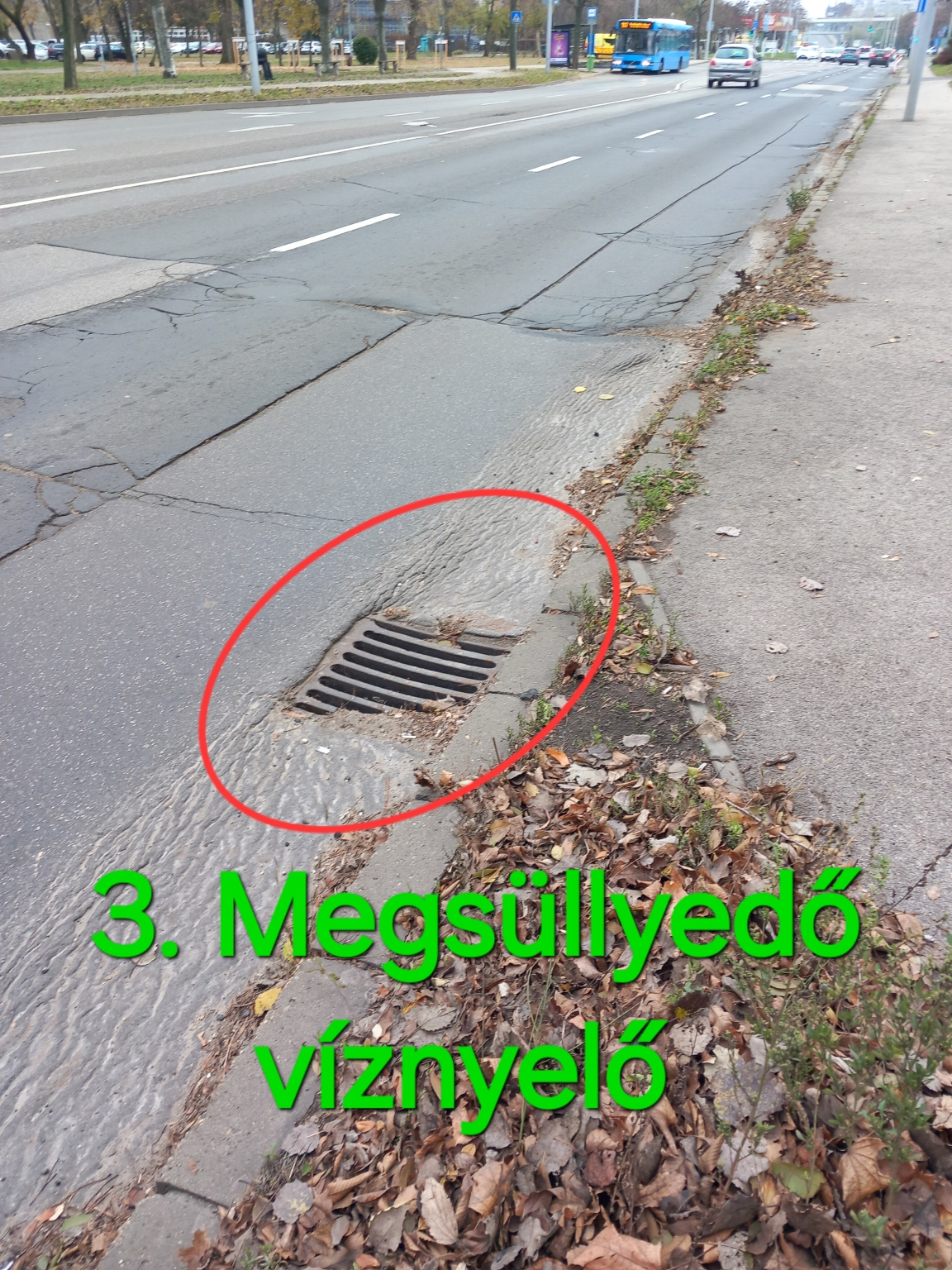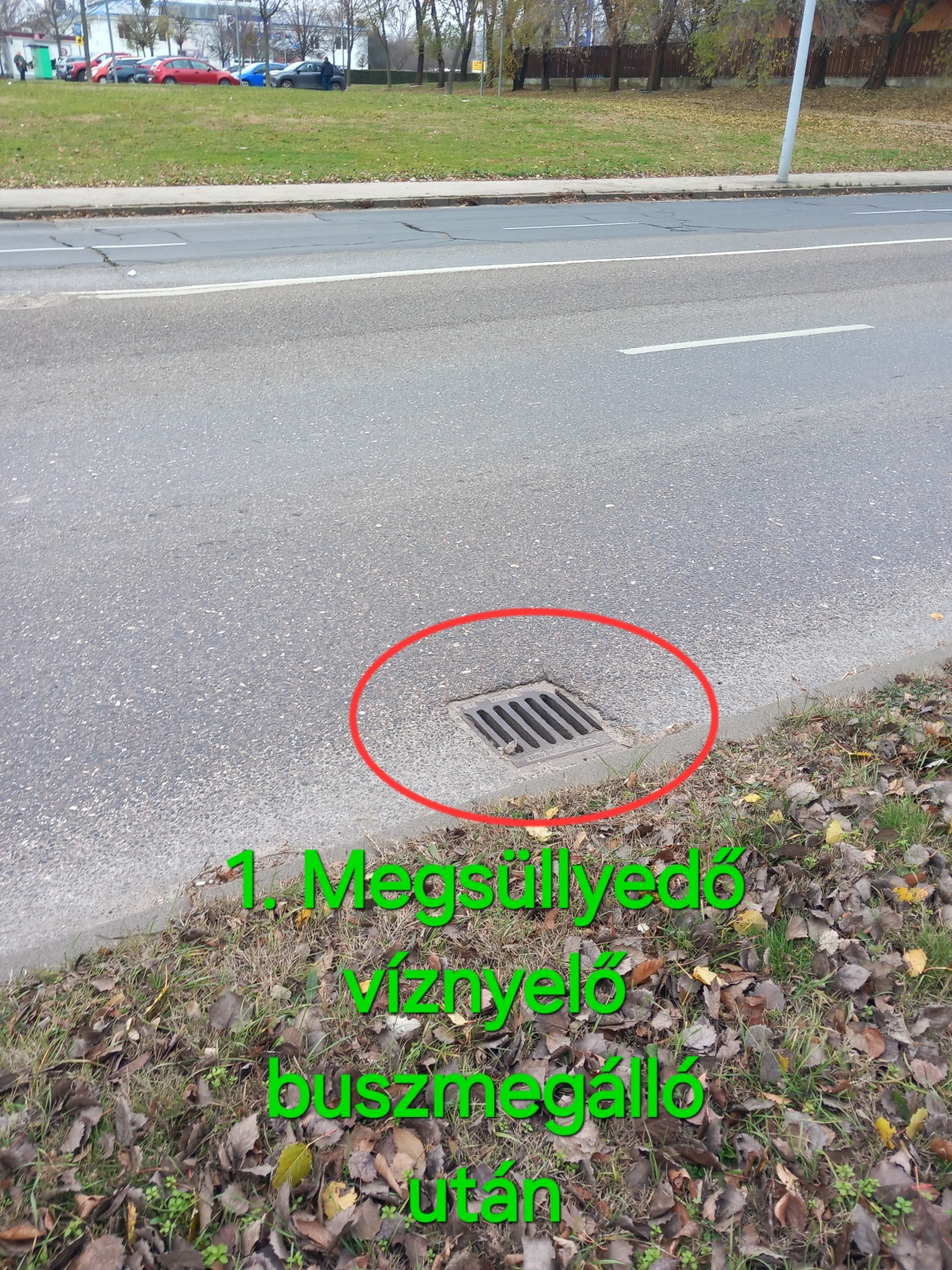 Értesítem hogy Sibrik Miklós úti útvonalon a 85 ös, 85E, 68 as, 268 as és 117 es autóbusz vonalán, mind három darab víznyelők mind kettő egy sávon megsüllyedések láthatóak