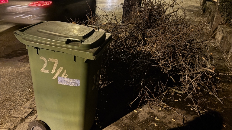 Fahulladékkal el van torlaszolva a járda.
