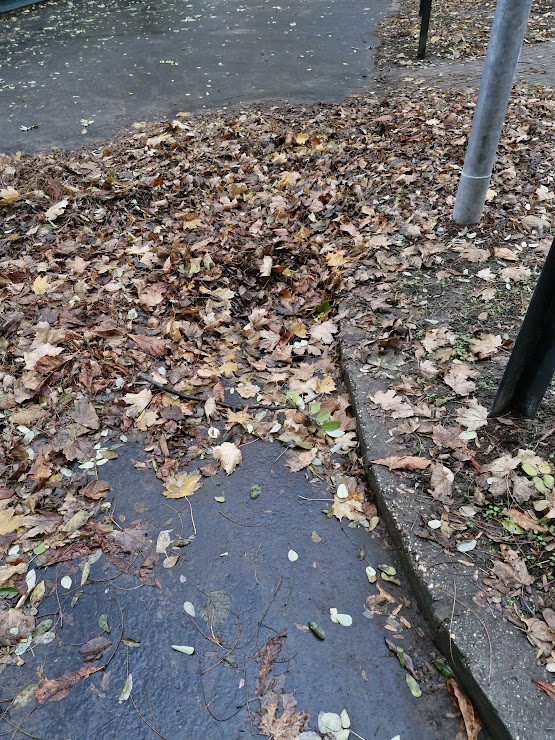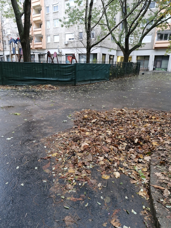 A játszótér mellett a járdán térdig ér az avar. Két csatornalefolyó is van itt, egyiket sem látni a sok levéltől. Kérjük a járda takarítását a játszótér környékén (is).