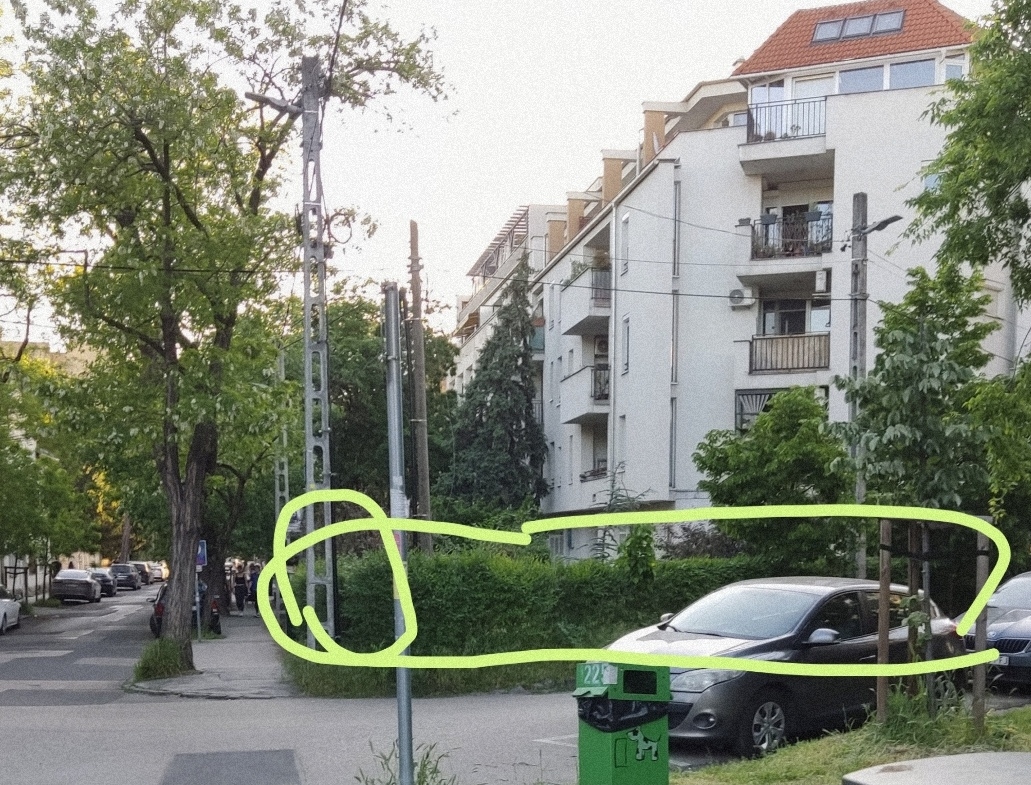 Veszélyes bokrok közterületen az útkereszteződésben. A gyalogosok, autósok számára veszélyes, kilátást takaró magas, úttestre is ránőtt bokrok. Kérjük az eltávolításukat a kereszteződésben és közelében!