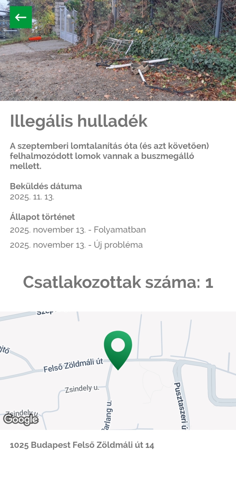 mellett (29-es busz, Felső Zöldmáli út 14.) 25/11/13-án a Buda app-ban bejelentettem, de azóta is csak "folyamatban" vagy az intézés...