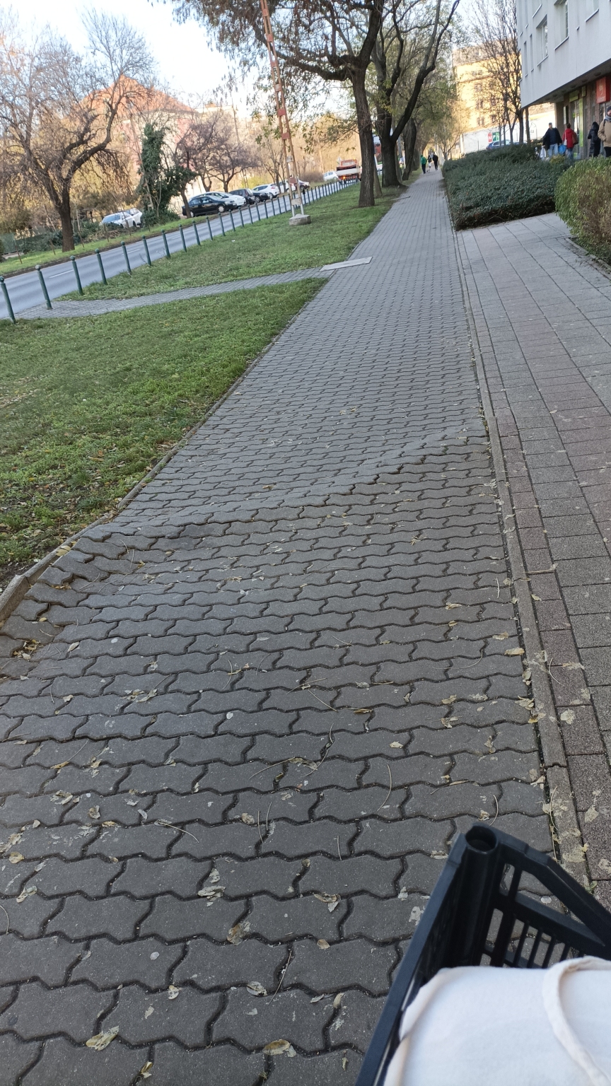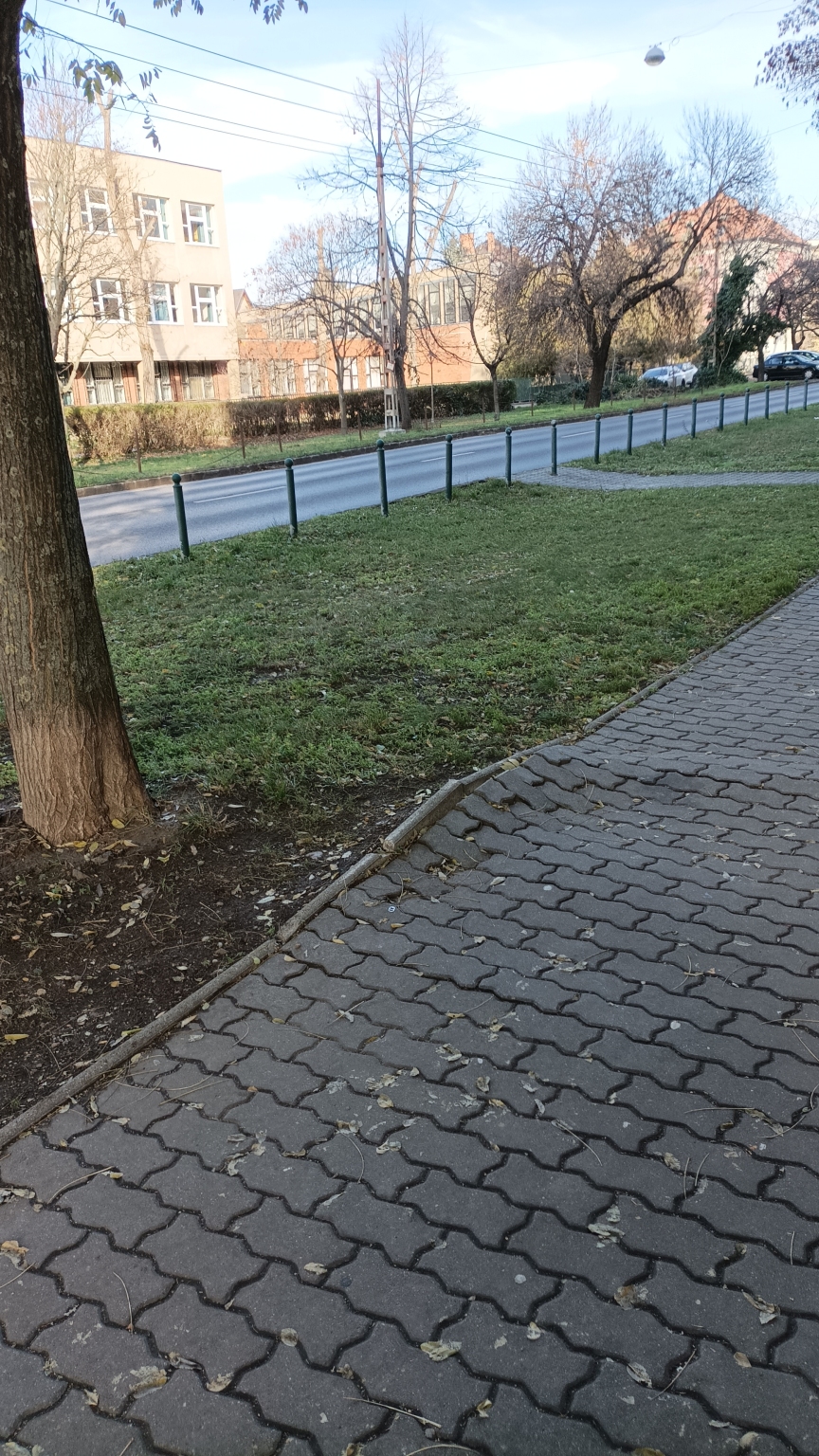Az Egressy úton a fa gyökere kilökte a térköveket a járdán. A járda így egyre jobban felpúposodik, és hamarosan kicsúsznak a térkövek a helyükről. Jó lenne, ha valamit csinálnának a fával és helyre raknák a köveket! Mellesleg el is lehet esni a sötétben.