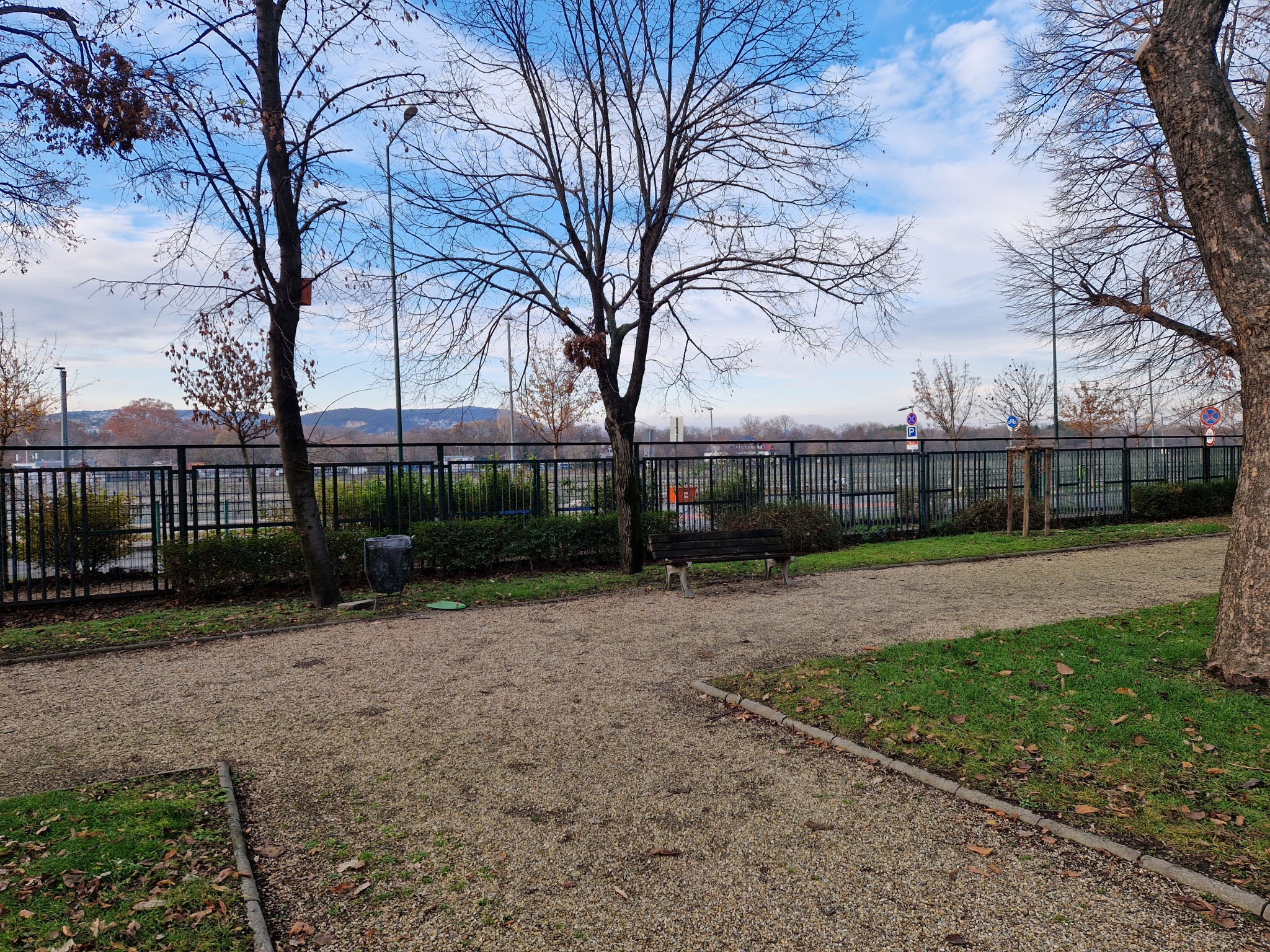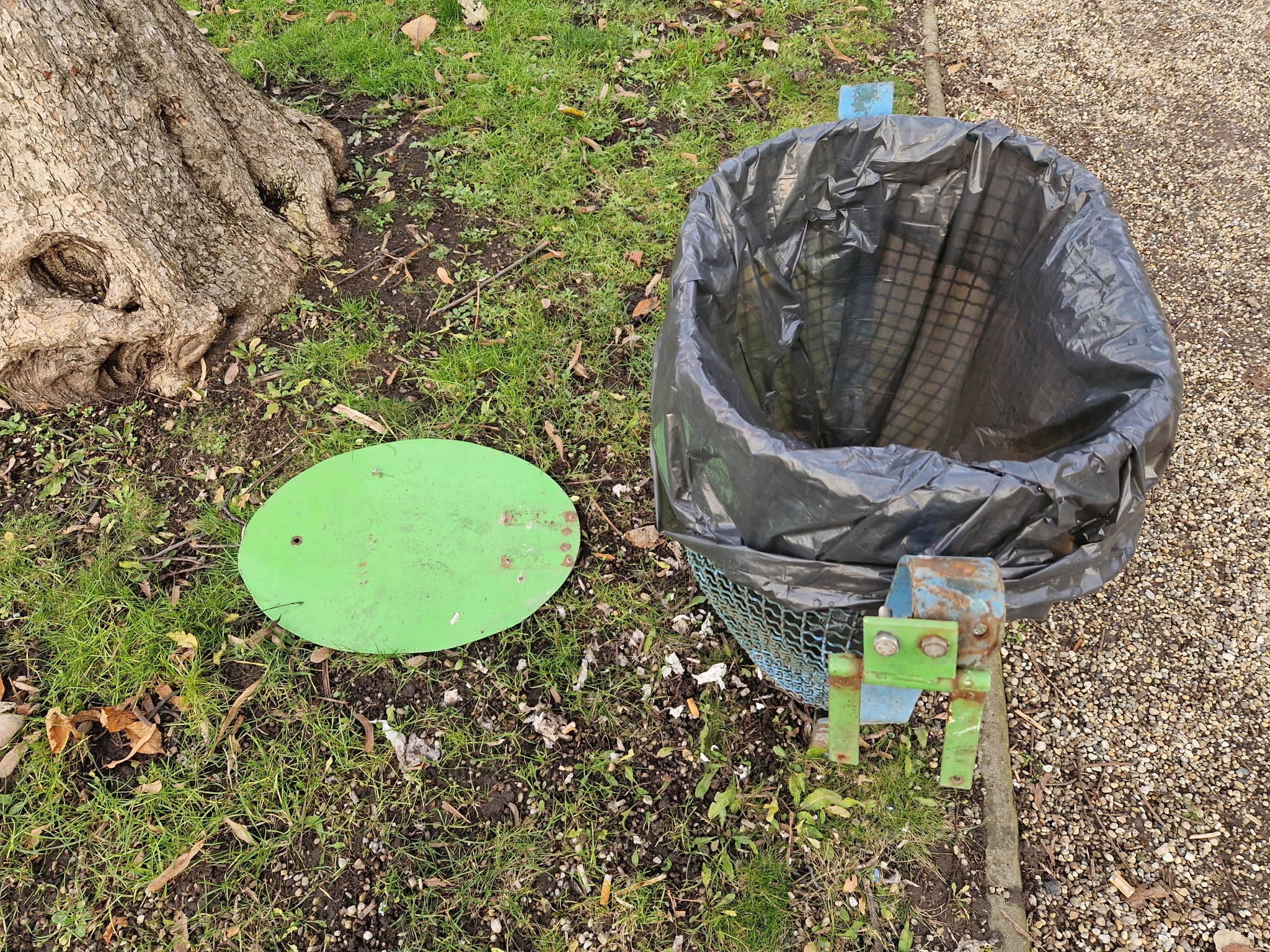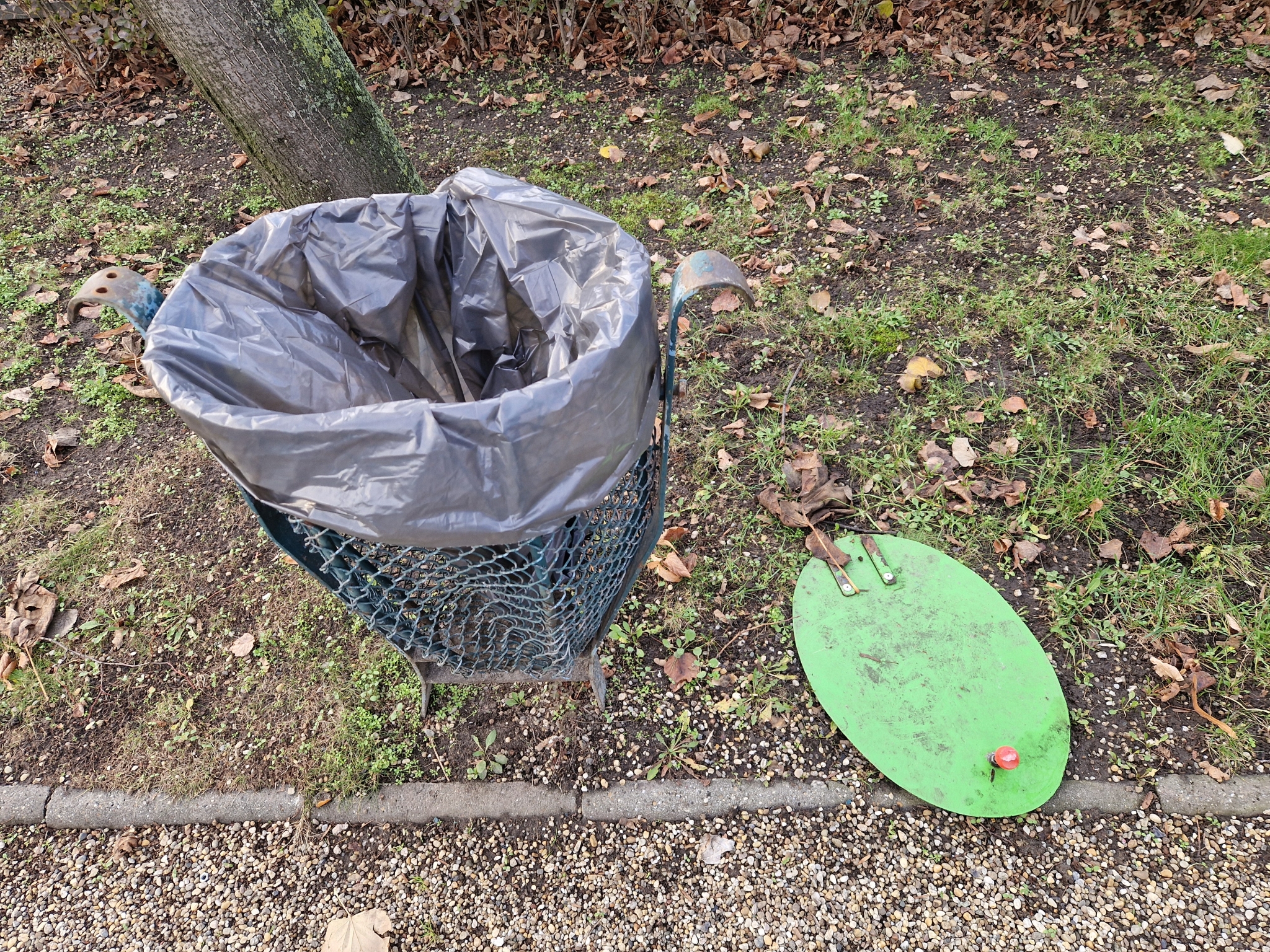 A Szent István park Duna felőli részénél több kuka teteje is leesett.