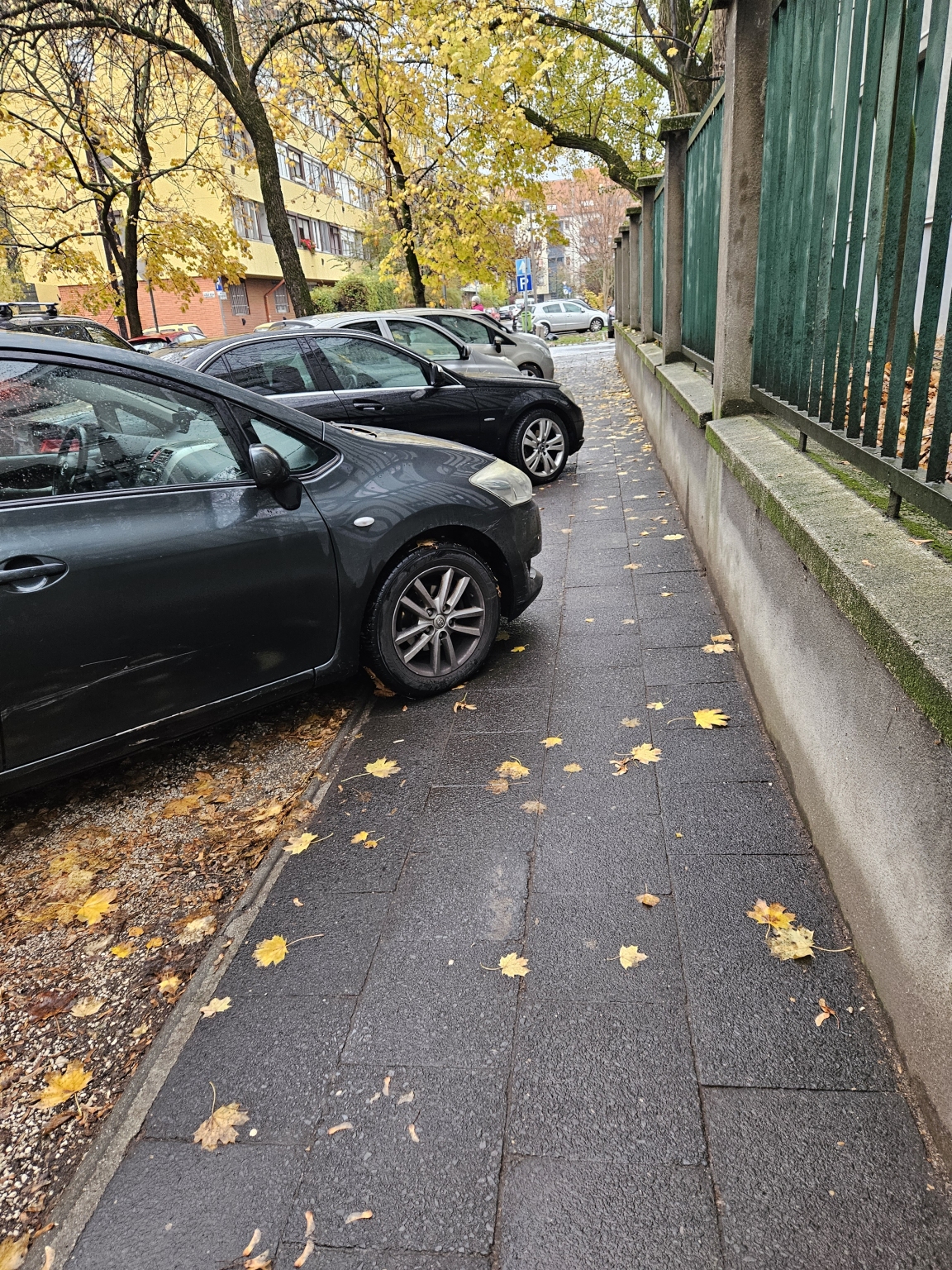 Rendszeresen az autók a vonalon, parkolóhelyen túllógva parkolnak, jelentősen lecsökkentve az amúgy is keskeny járdát. Zápor-Viador-Beszterce, ahol naponta járok és minden nap találkozok ilyen autósokkal.