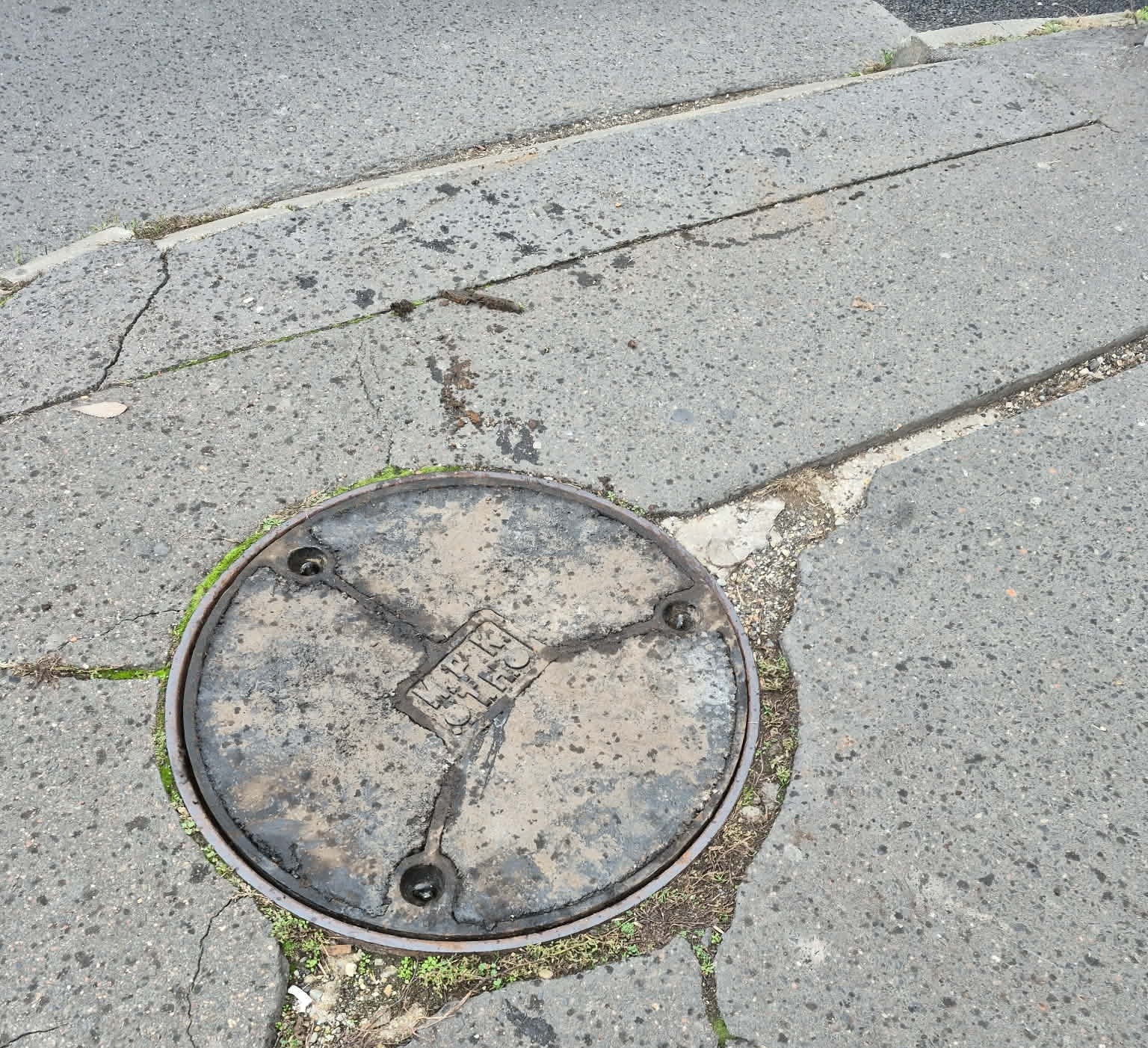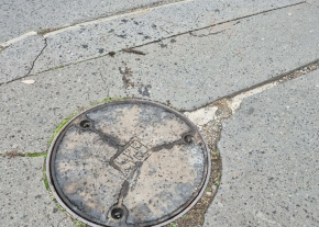 Hiányos kerek fedlap nagyon forgalmas helyen