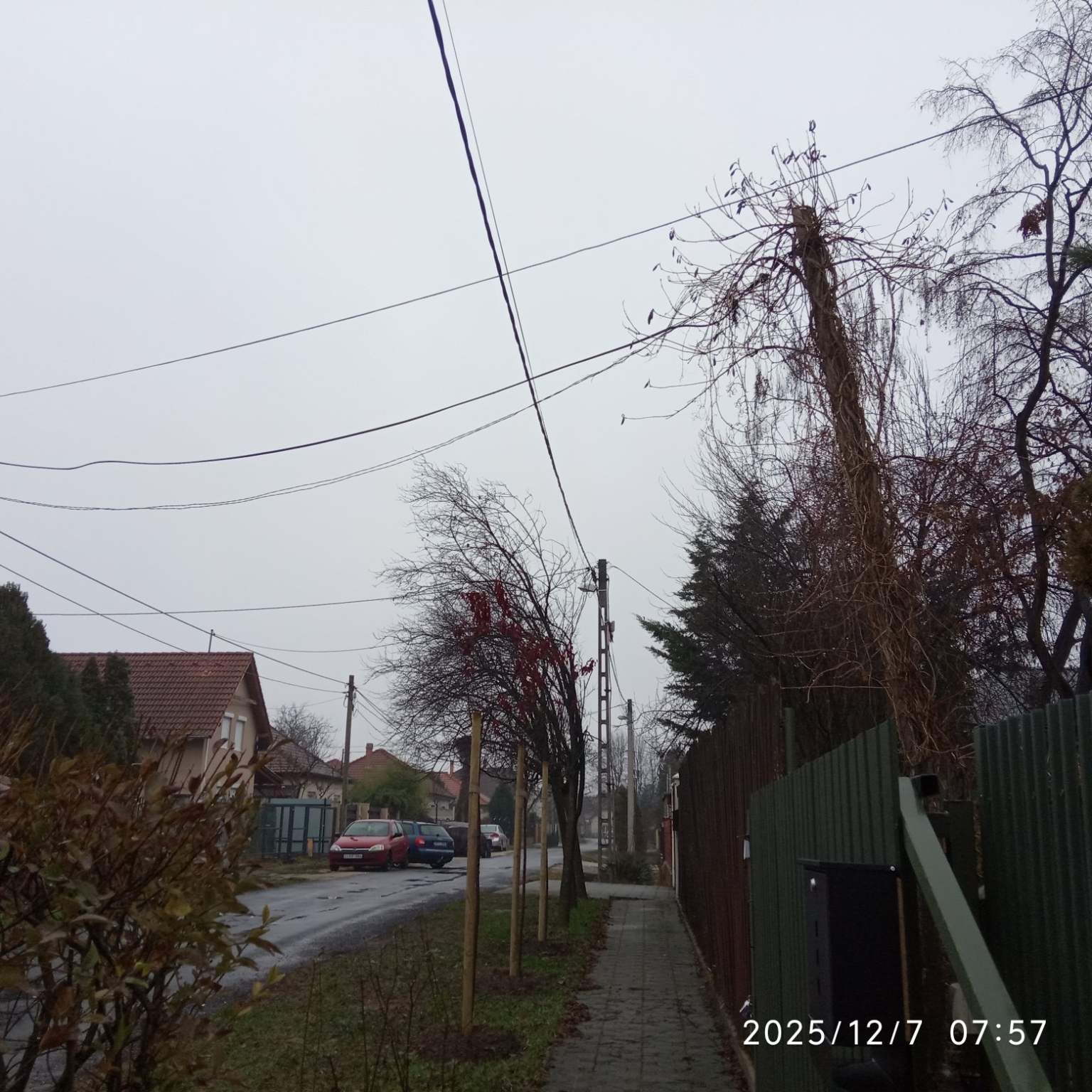 Az oszlop kidőlése az utcán merőlegesen elhaladó elektromos vezetéket is megrongálhatja, leszakíthatja.