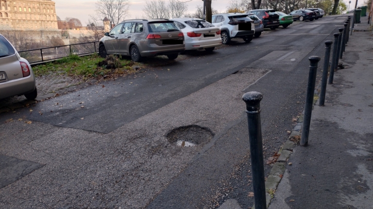 A kissé megdőlt parkolásgátló oszlopokat és az általános útkarbantartást 2026 évben fogjuk tudni elvégezni....