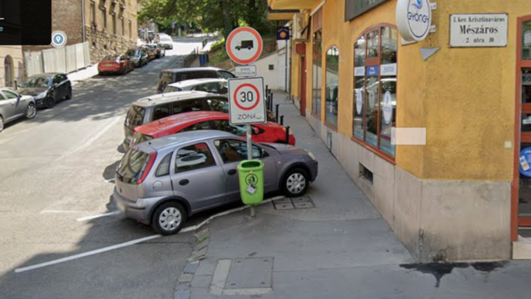 A jelzett területen parkolásgátló oszlopok biztosítják azt, hogy gépjárművel ne tudjanak a járda teljes területére felállni.