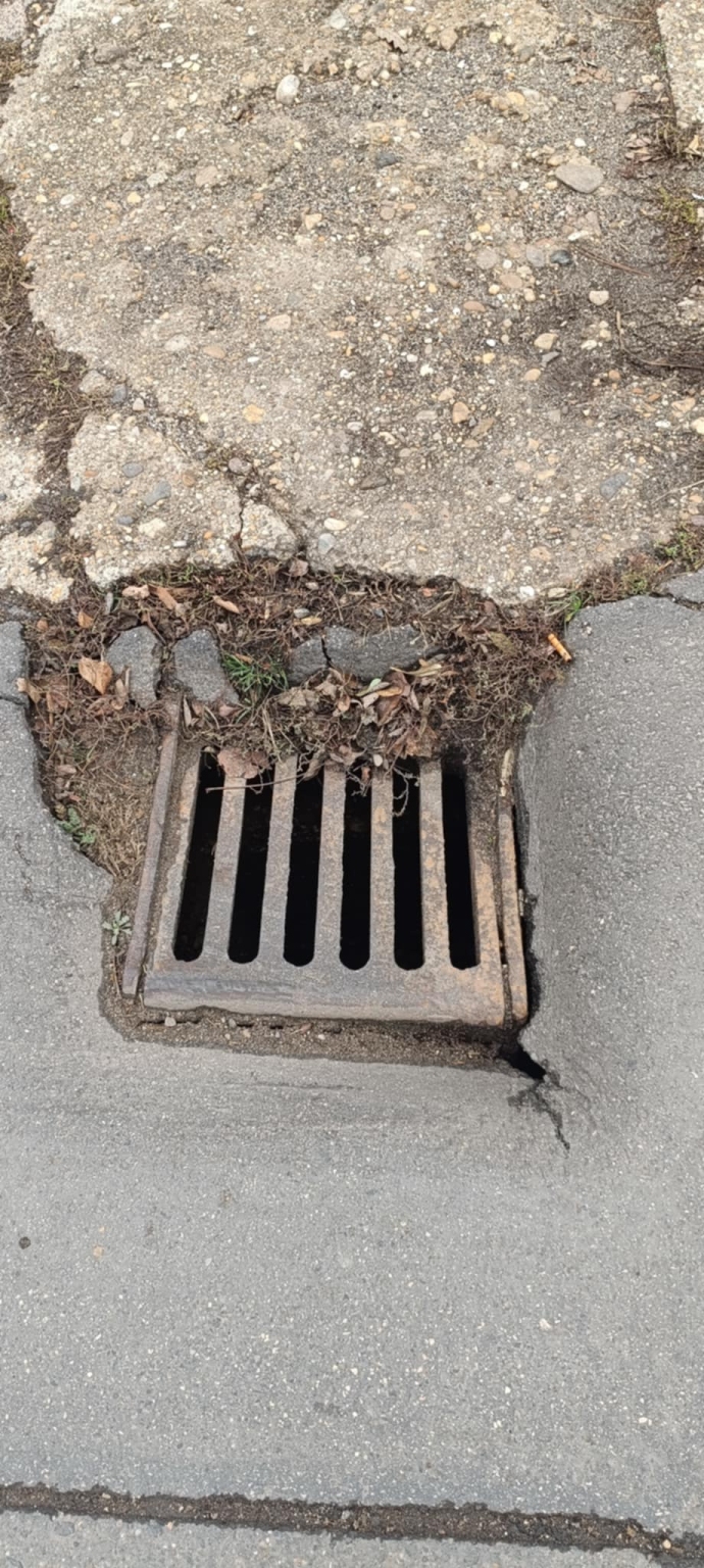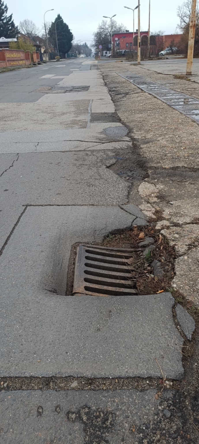 16.ker. Margit utca 137. előtt egy vízelvezető megsüllyedt és beszakadás veszélyes.