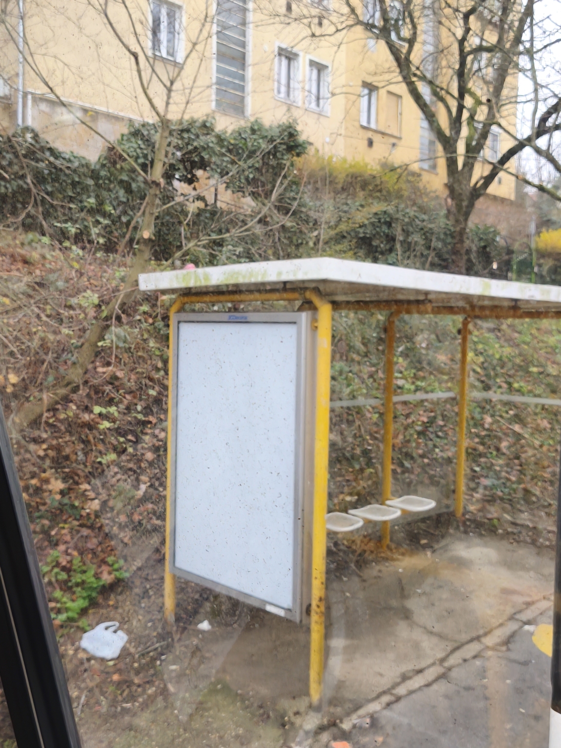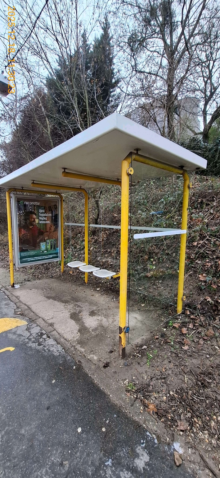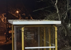 Hónapok óta ott van ez a rózsaszín papucs az utasváró tetején. Kérem végezzék el a tető takarítását!