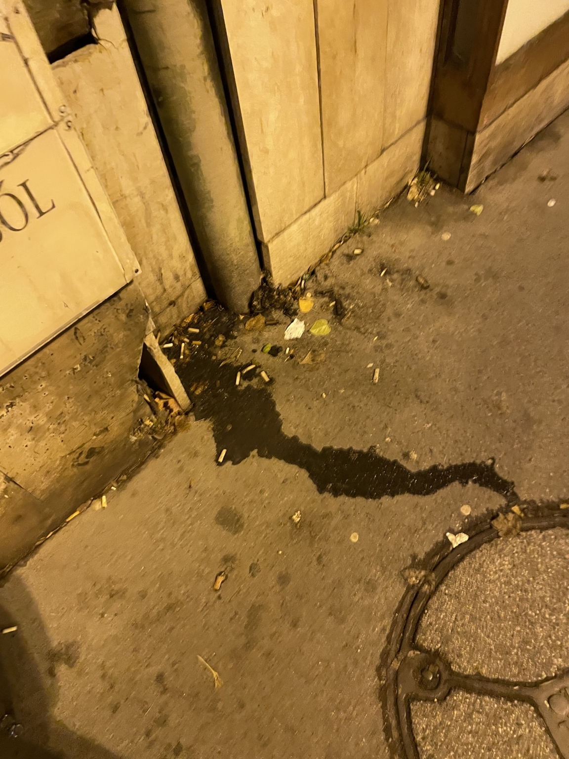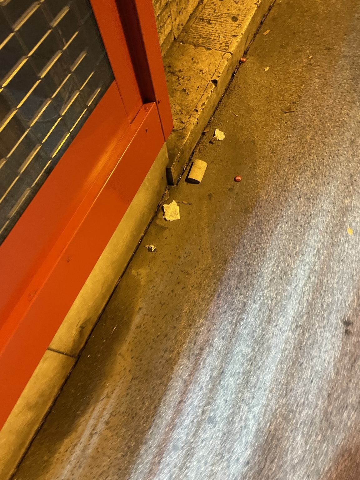 A hulladék feltehetően az éjjel-nappali és a dohánybolt vásárlóitól származik (kávékeverő pálcikák, cigarettacsikkek, alkoholos üvegek, energiaitalos dobozok, kupakok, cigarettásdobozok stb.).