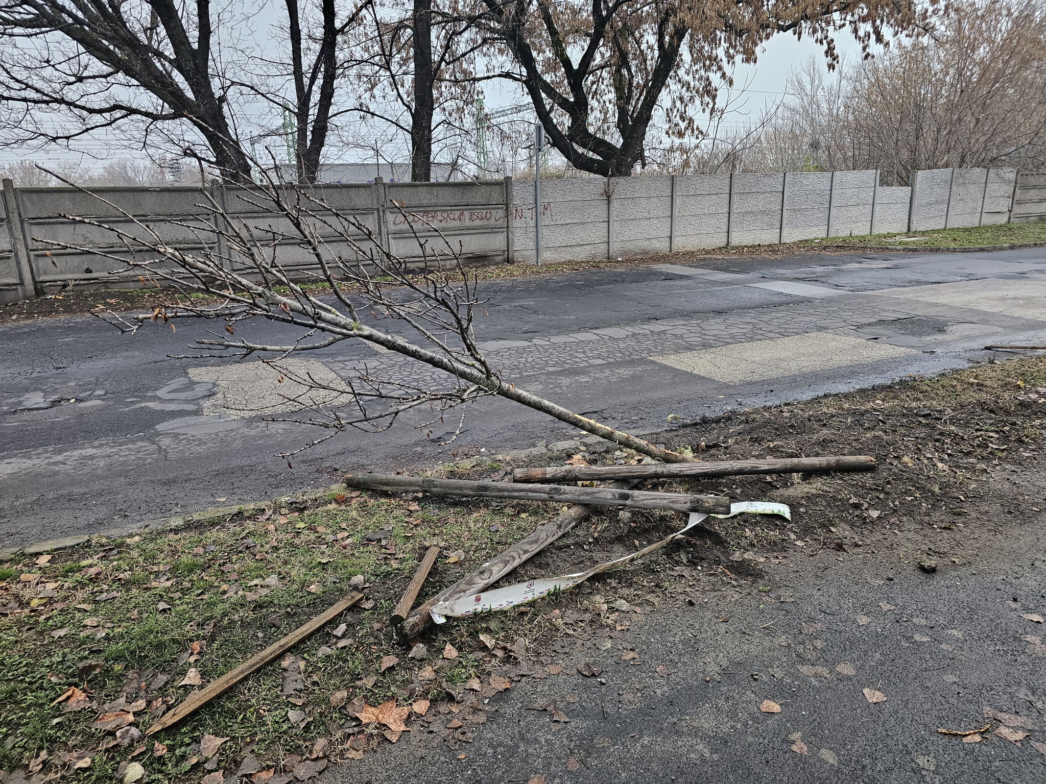 13. kerület Kámfor utca és Jász utca sarkánál autóval kidöntöttek egy fiatal fát.