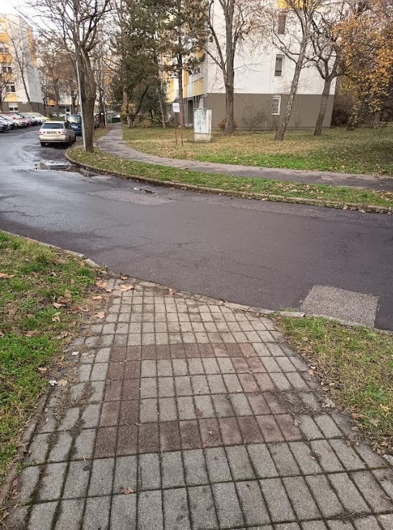 A felhajtó hiánya miatt ezen az útszakaszon kénytelen vagyok az úttesten tolni a babakocsit. Ez rendkívül balesetveszélyes, mivel az autók közlekedése során nincs lehetőségem biztonságosan lehúzódni, így mind magamra, mind a gyermekre fokozott veszélyt jelent.