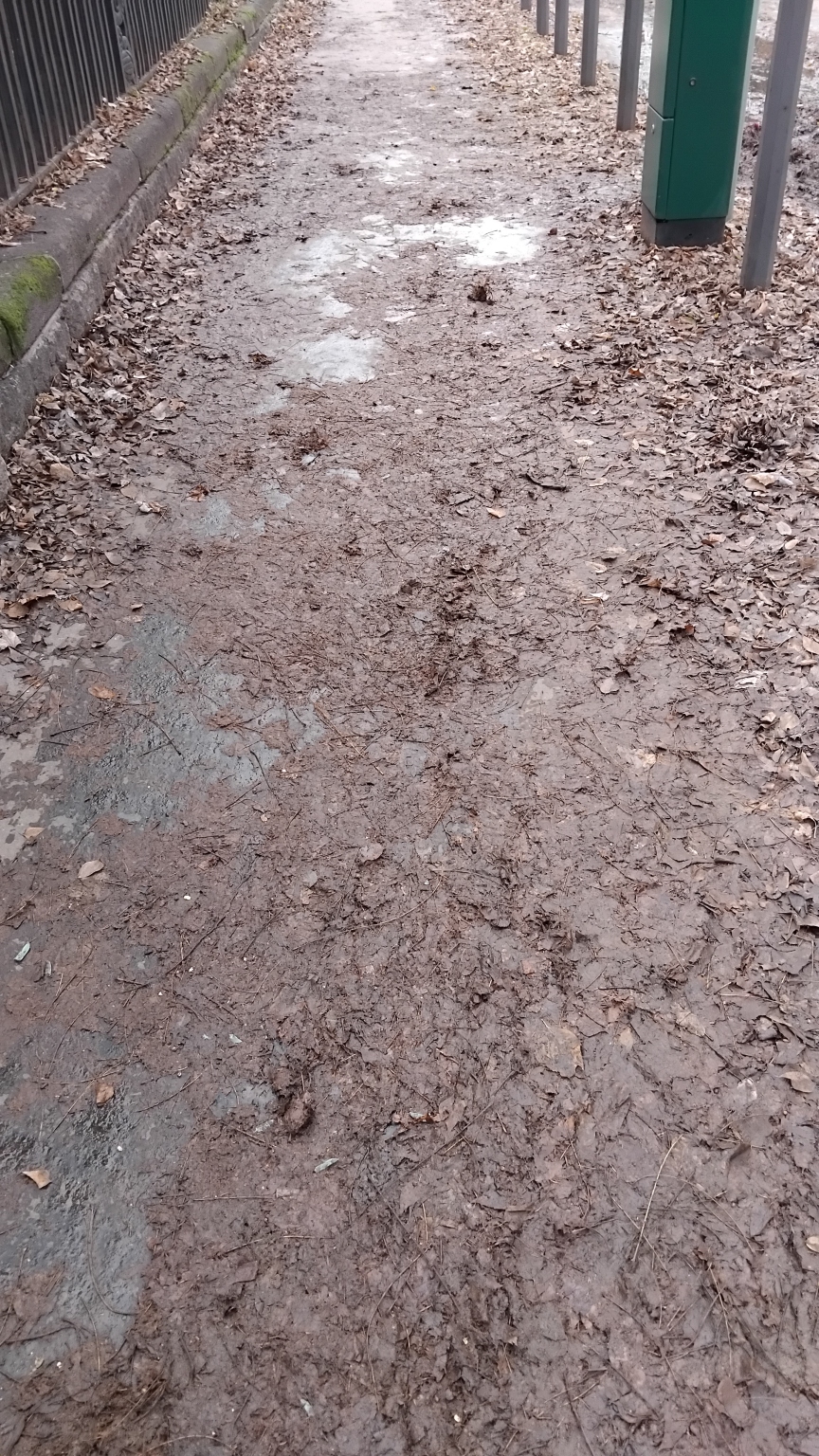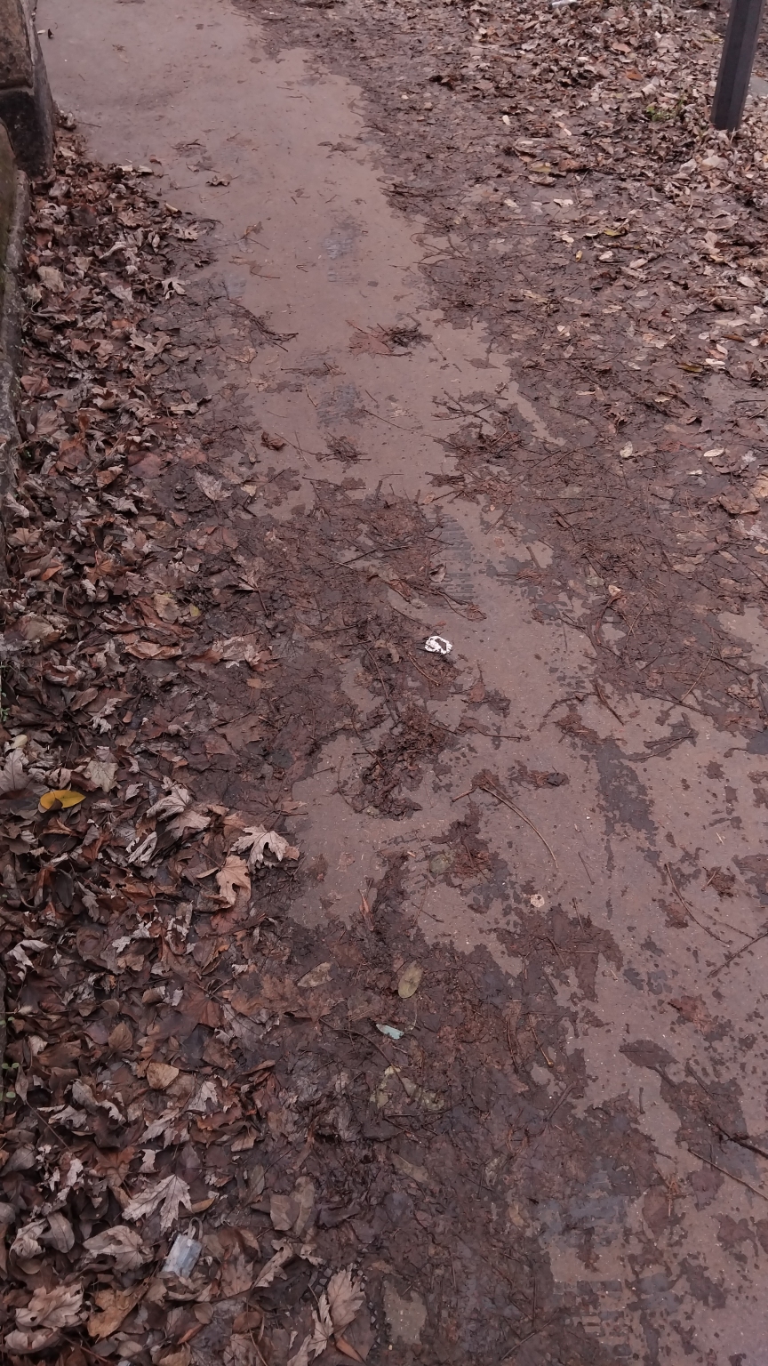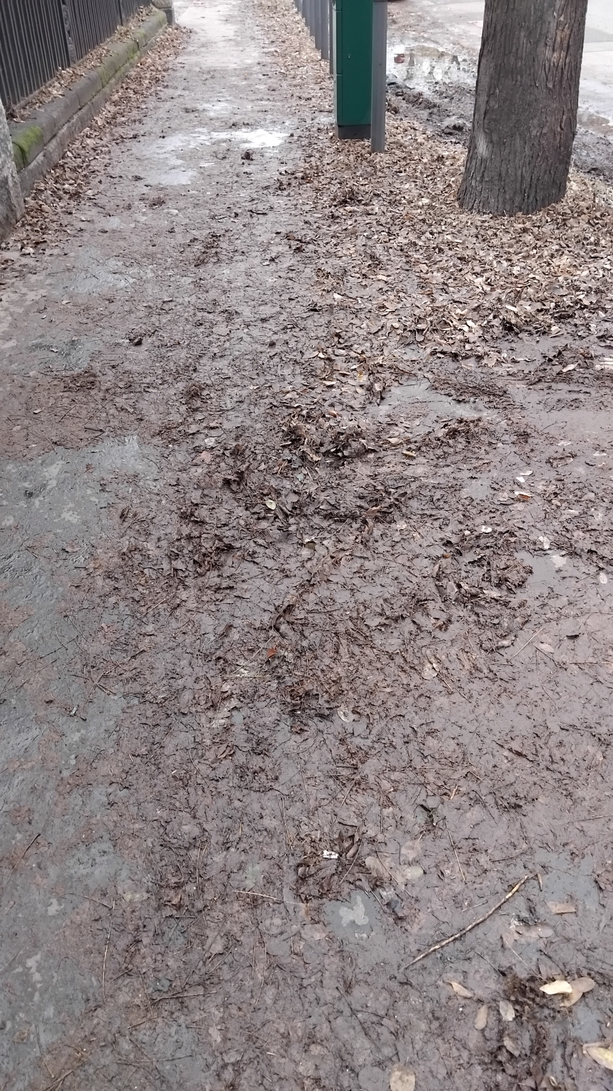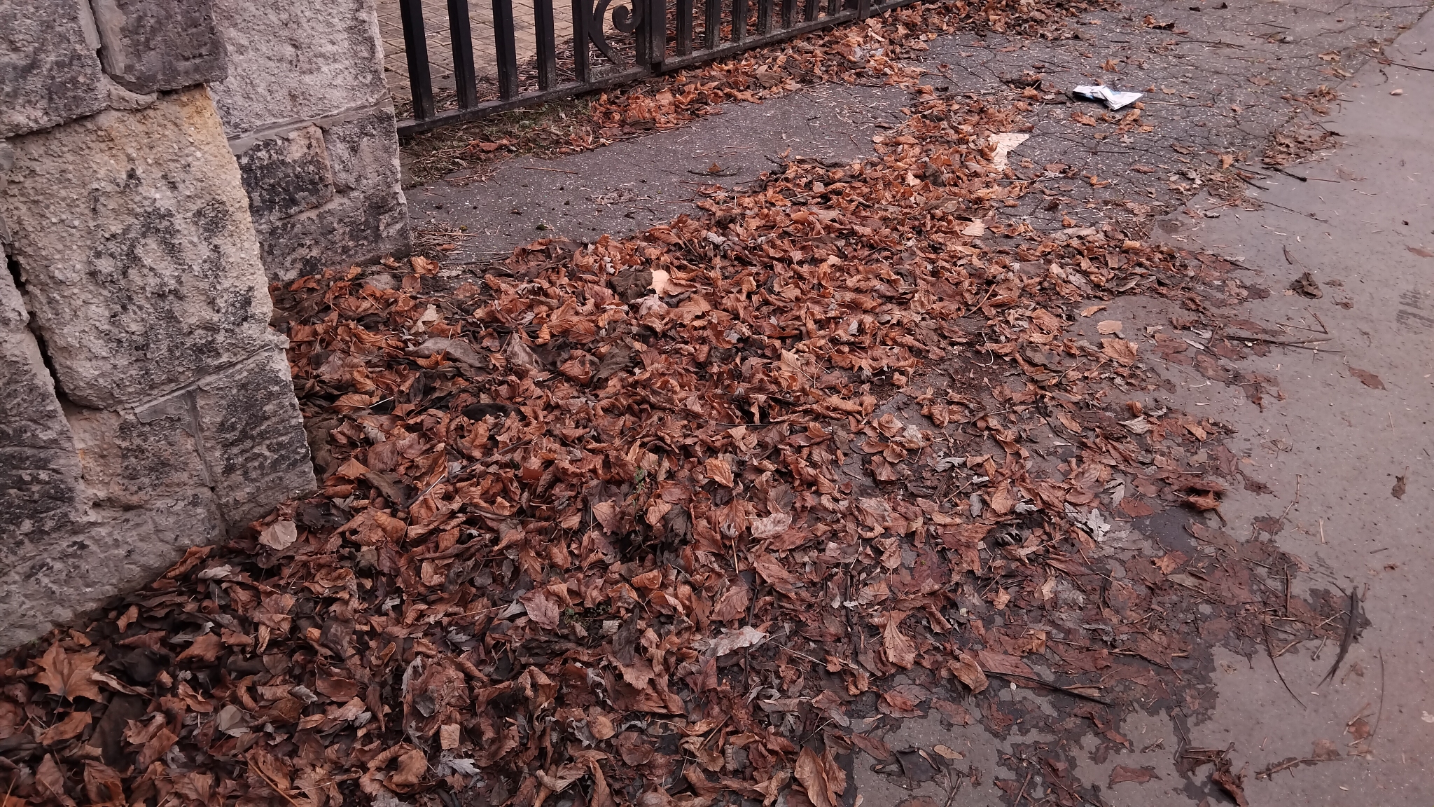 Legyenek olyan jók egy söprést intézni az intézmény nem bejárati oldalán is - sajnos lassan balesetveszélyesen csúszossá válik a nyálkás, vizes avar.