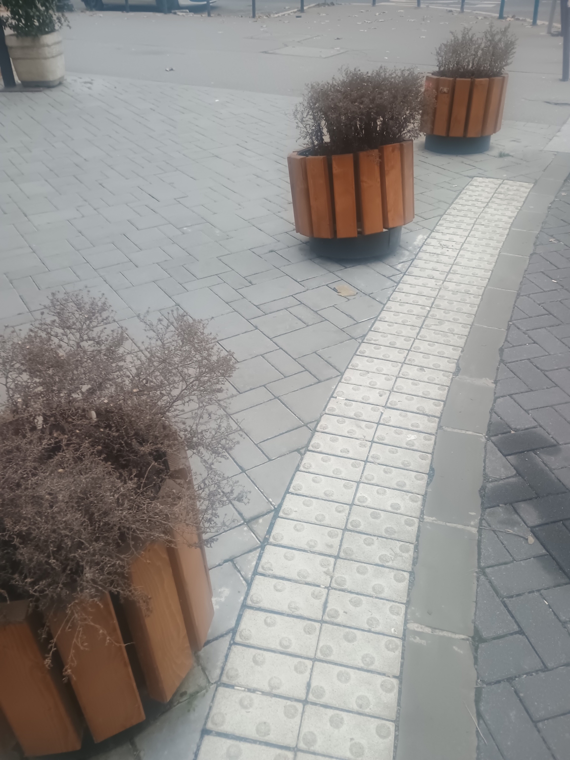 Egy megrongálódott virágtartó nagyon elüt a mellette lévő virágtartóktól.