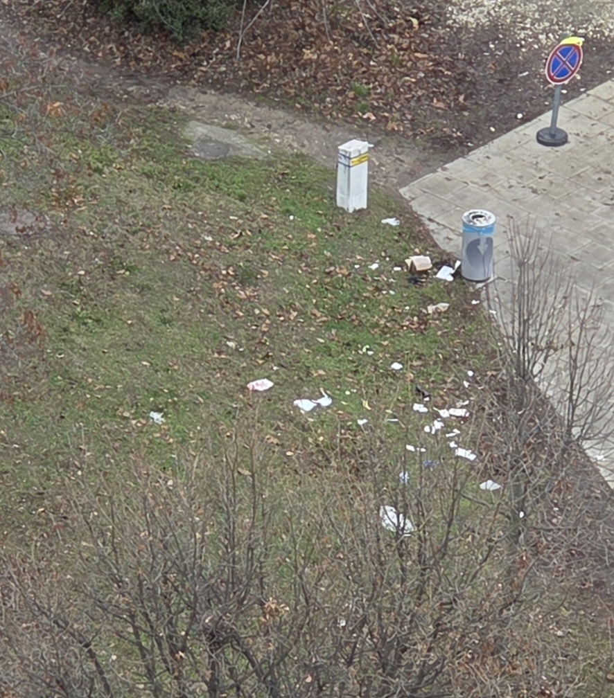 A XI. ker. Nagyszeben téren rendszeresen a képen látható állapotok uralkodnak annak ellenére, hogy a tér és környéke is a Közterület-felügyelet által kamerával megfigyelt terület. Az alkalmankénti takarításon kívül kérjük a megelőzést, a fenti problémát is okozó, közterületen tiltott tevékenységek rendszeres ellenőrzését és megszüntetését.