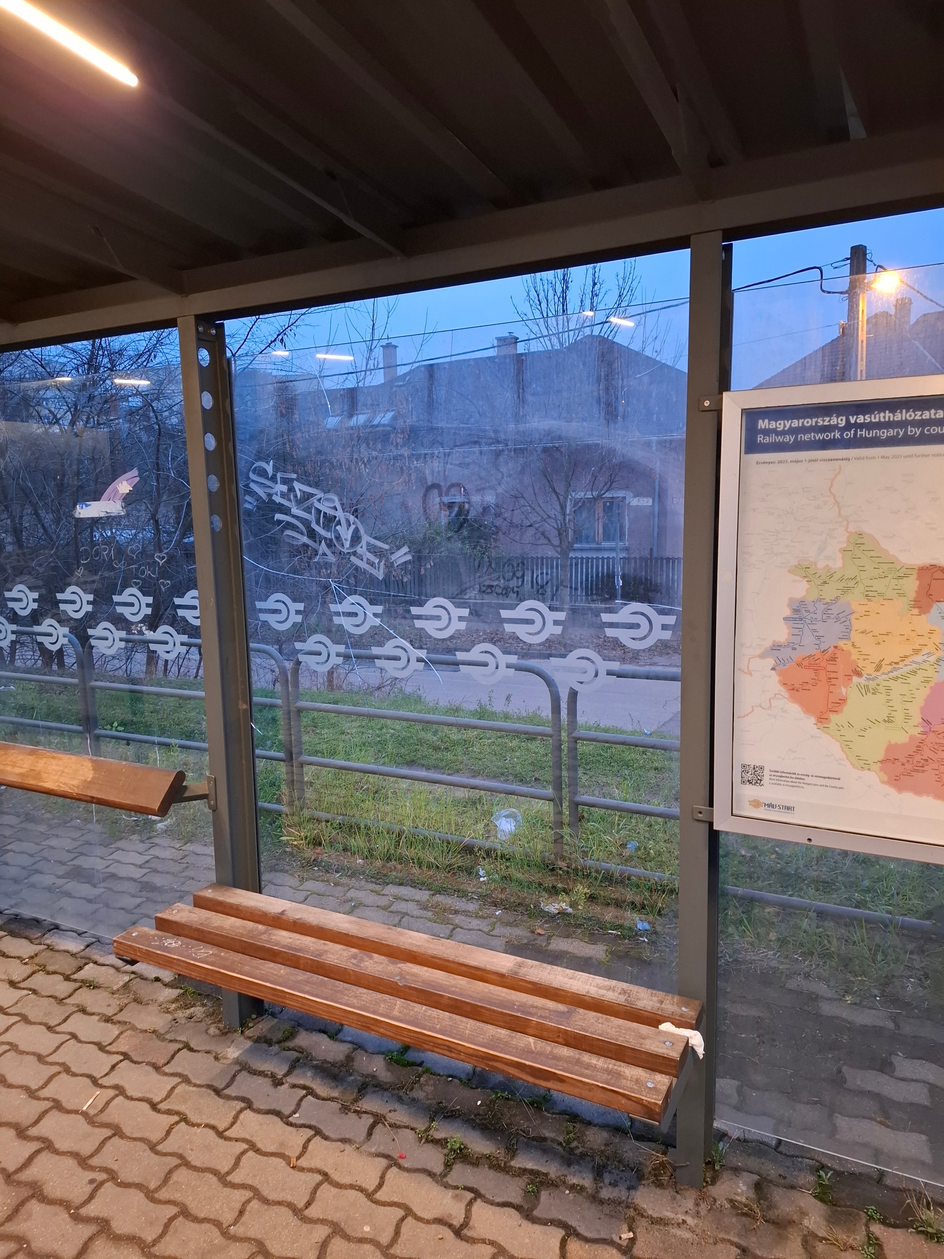 Tisztelt MÁV! Újpalota vasútállomáson, Rákos felé. Megrepedt az esőbeálló üvege. Kérem erősítsék meg a repedést, hogy ne terjedjen tovább. Így olcsóbb és fenntarthatóbb, mintha megvárjuk, hogy az egész üvegtábla menthetetlenül cserére szoruljon. Köszönöm. Egy közeli lakos.