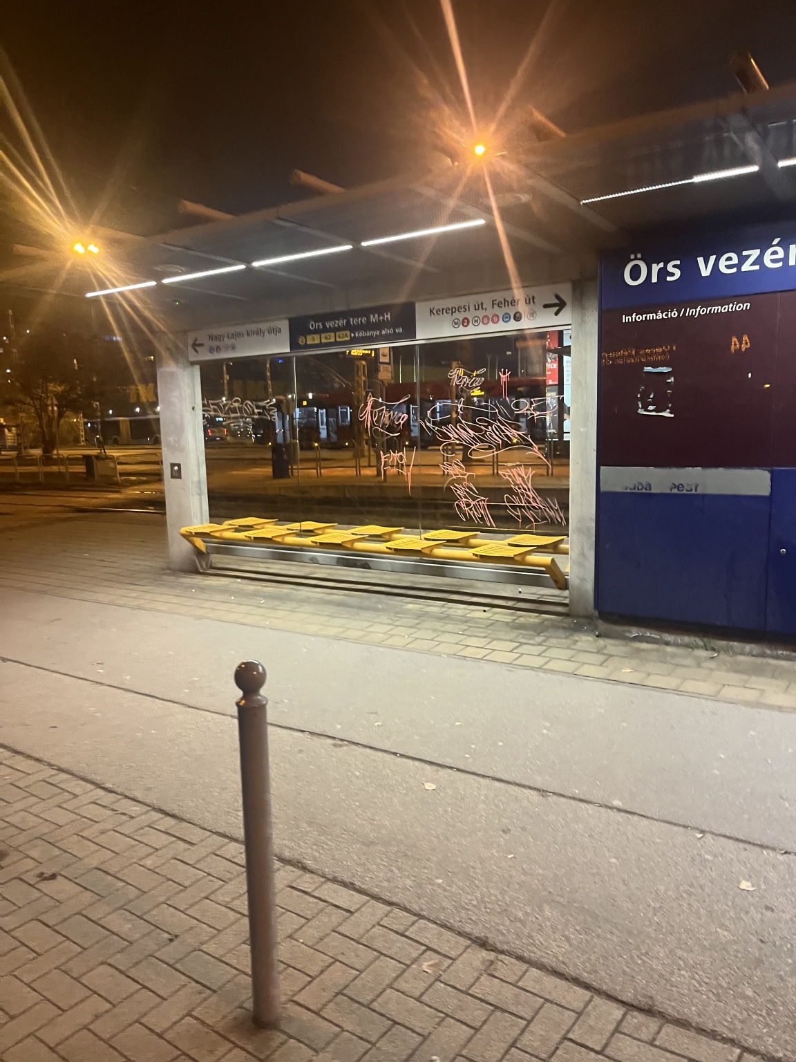 Örs vezér terén a zuglói oldal 3-as villamosmegálló vitrinjét összegraffitizték egy ideje.