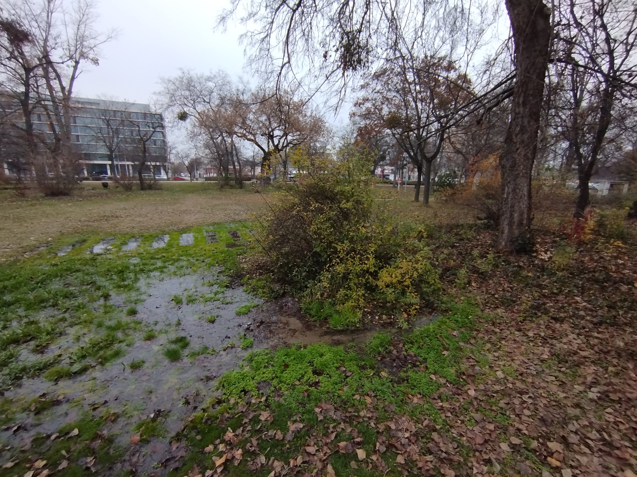 A Népliget egyik szakaszán folyamatosan ömlik a tiszta víz. Az nem látszik, hogy honnan jön a víz, de a környéken már szinte egy nagyobb pocsolya keletkezett. A víznek utánpótlása van, a vz szemmel láthatóan erősen áramlik.