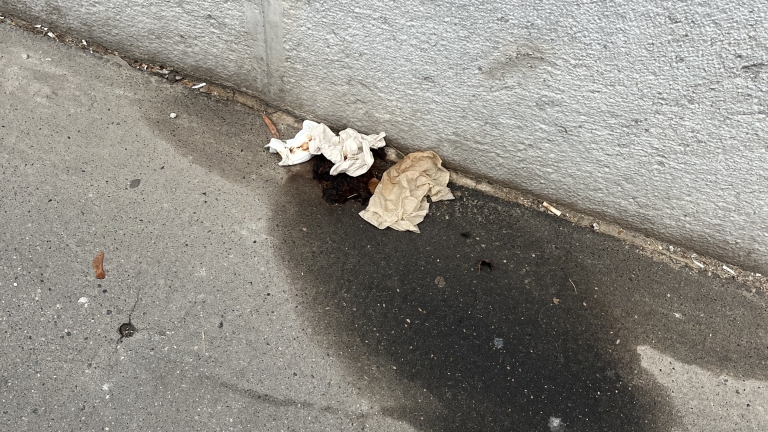 Budapest, I. kerület Kapucinus u. 1. Szám előtt emberi fekáliák vannak a járdán több napja