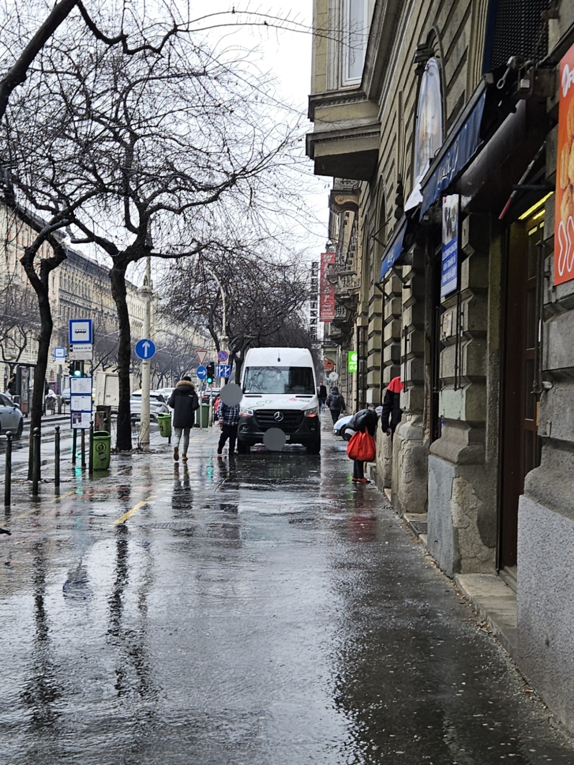 A József körúton a Békési utca és Kölcsey utca sarkán nincsenek parkolásgátló oszlopok és a kerékpársáv miatt szűkebb gyalogos forgalomnak fenntartott járdaszakaszra parkolnak.