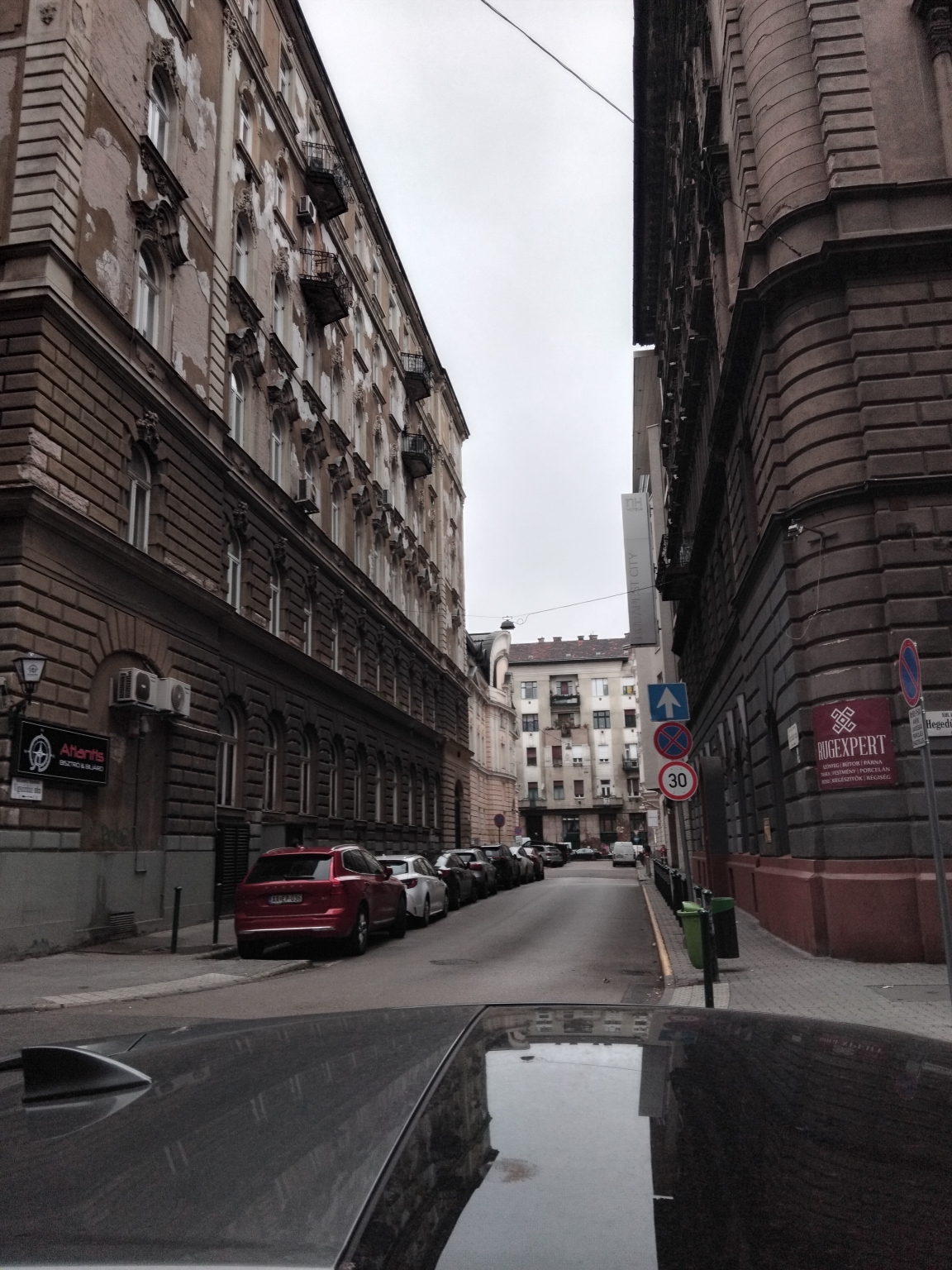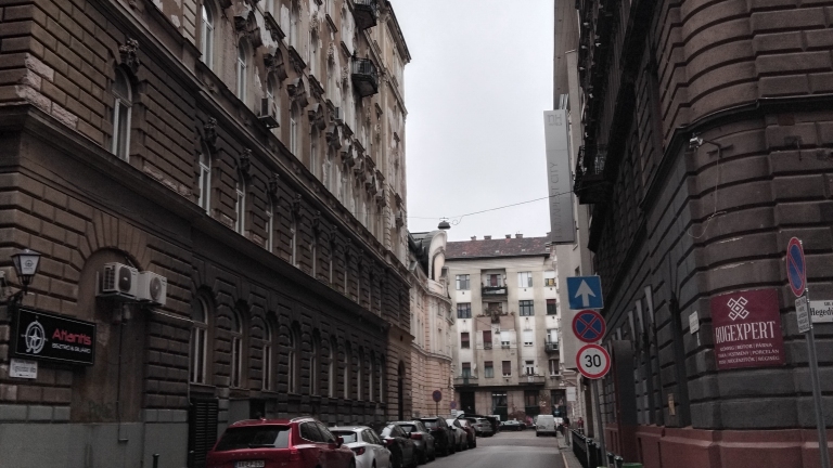 Van egy KRESZ tábla is a szálloda előtt, ami az egyir...