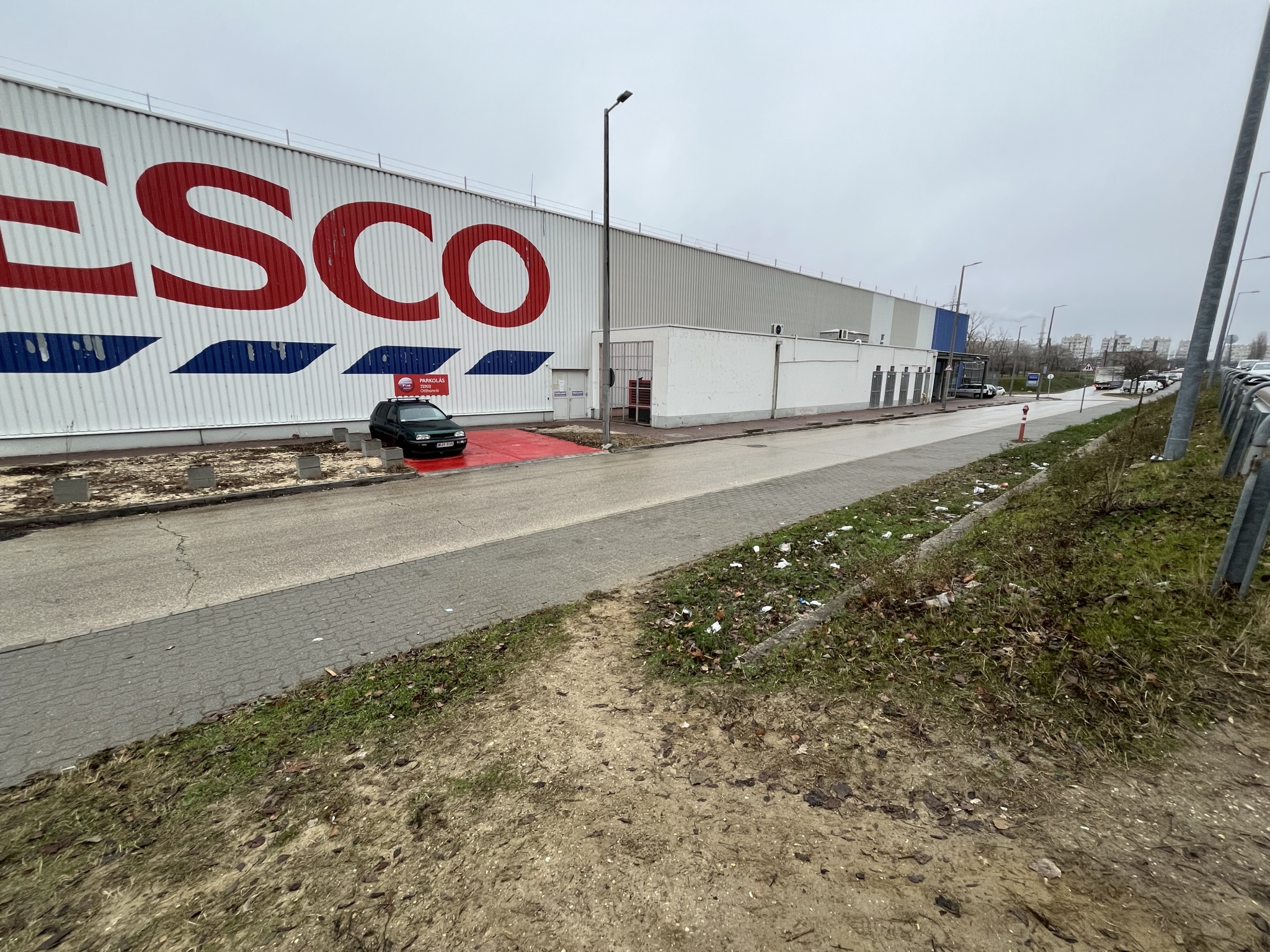 A képen látható sok apró szemét van a Tesco Madarász Viktor irodaház felőli oldalán.