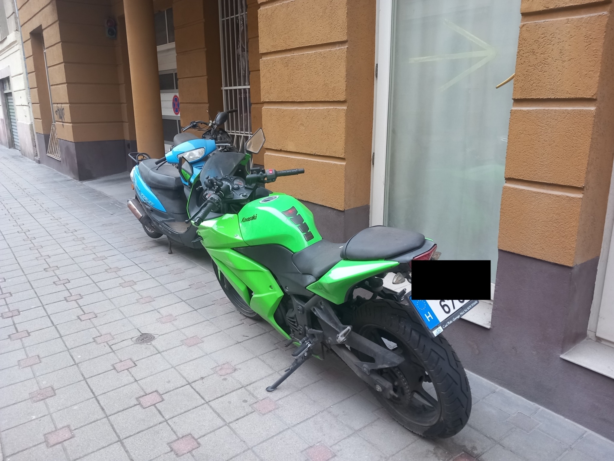 A VII. kerület Rózsa u. 10-12. ház előtt a járdán parkol legalább 4 hónapja három kétkerekű: egy rendszámos motorbicikli és két megbontott, rendszám nélküli moped. Ezek nem a házban lakók járművei.