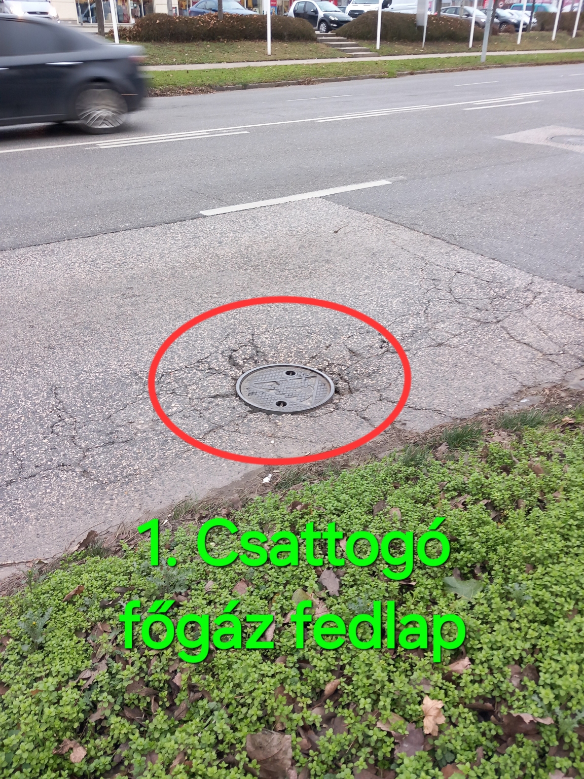 Értesítem hogy Gyömrői úti útvonalon a Főldgáz fedlap csattogás hallható, illetve főldgáz korrózióvédelmi berendezés doboz elferdülés látható